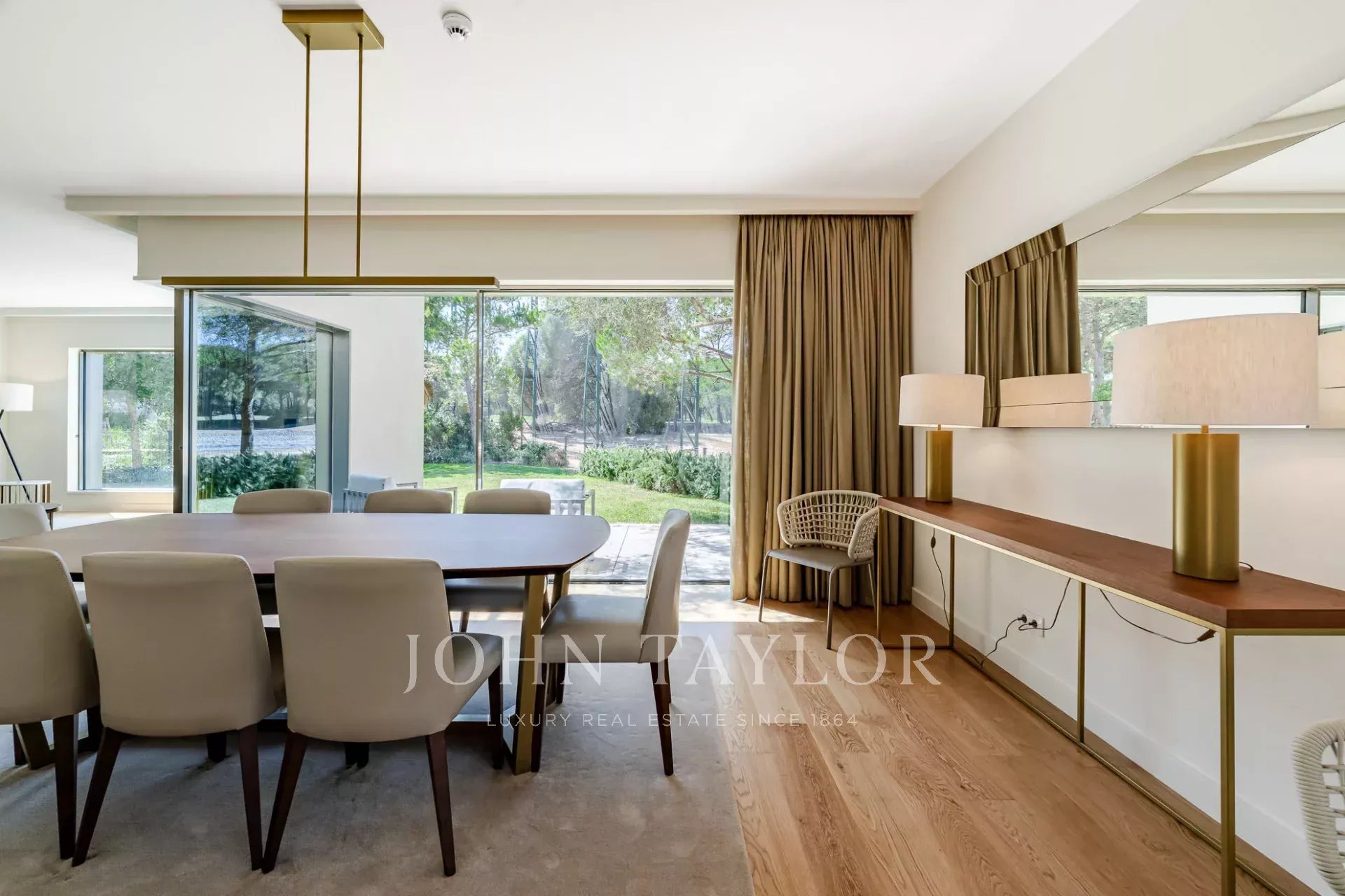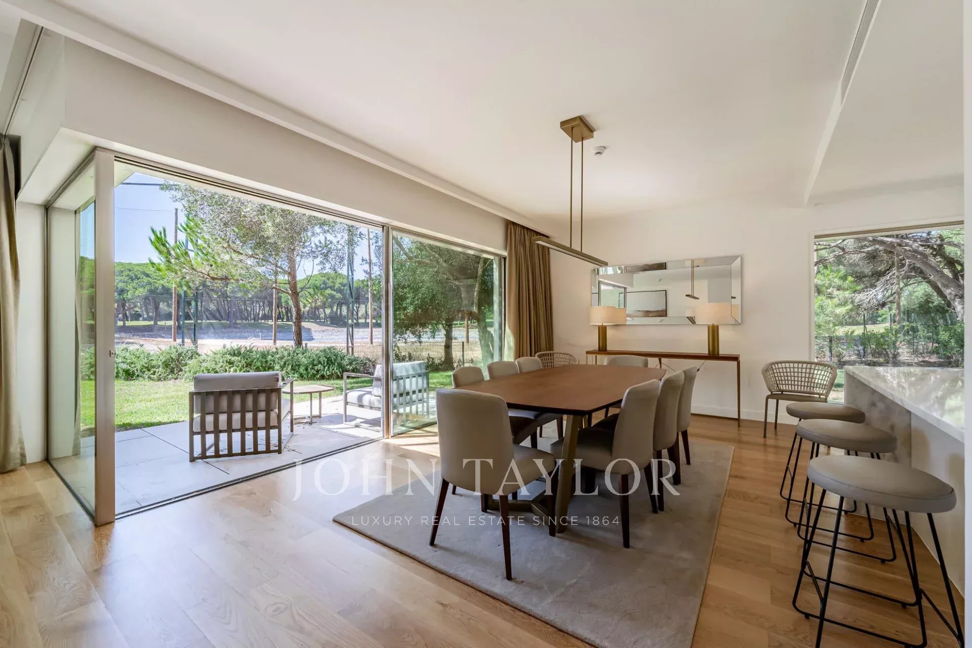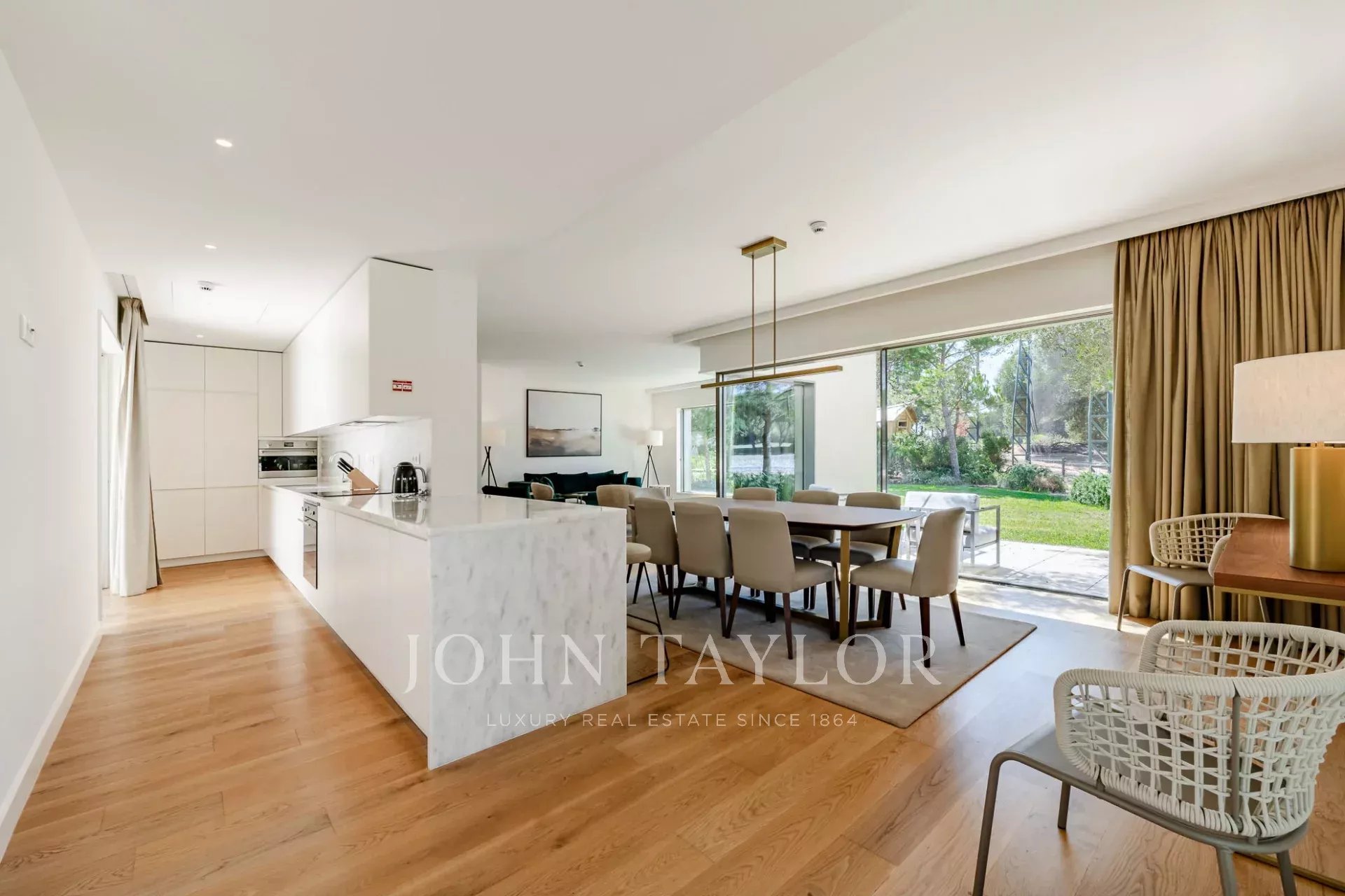 La planta baja cuenta con un amplio salón y comedor que se abre directamente al jardín a través de grandes puertas de cristal, creando un flujo perfecto entre la vida interior y exterior. Una cocina totalmente equipada, un baño de invitados y dos cómodos dormitorios en suite completan este nivel.