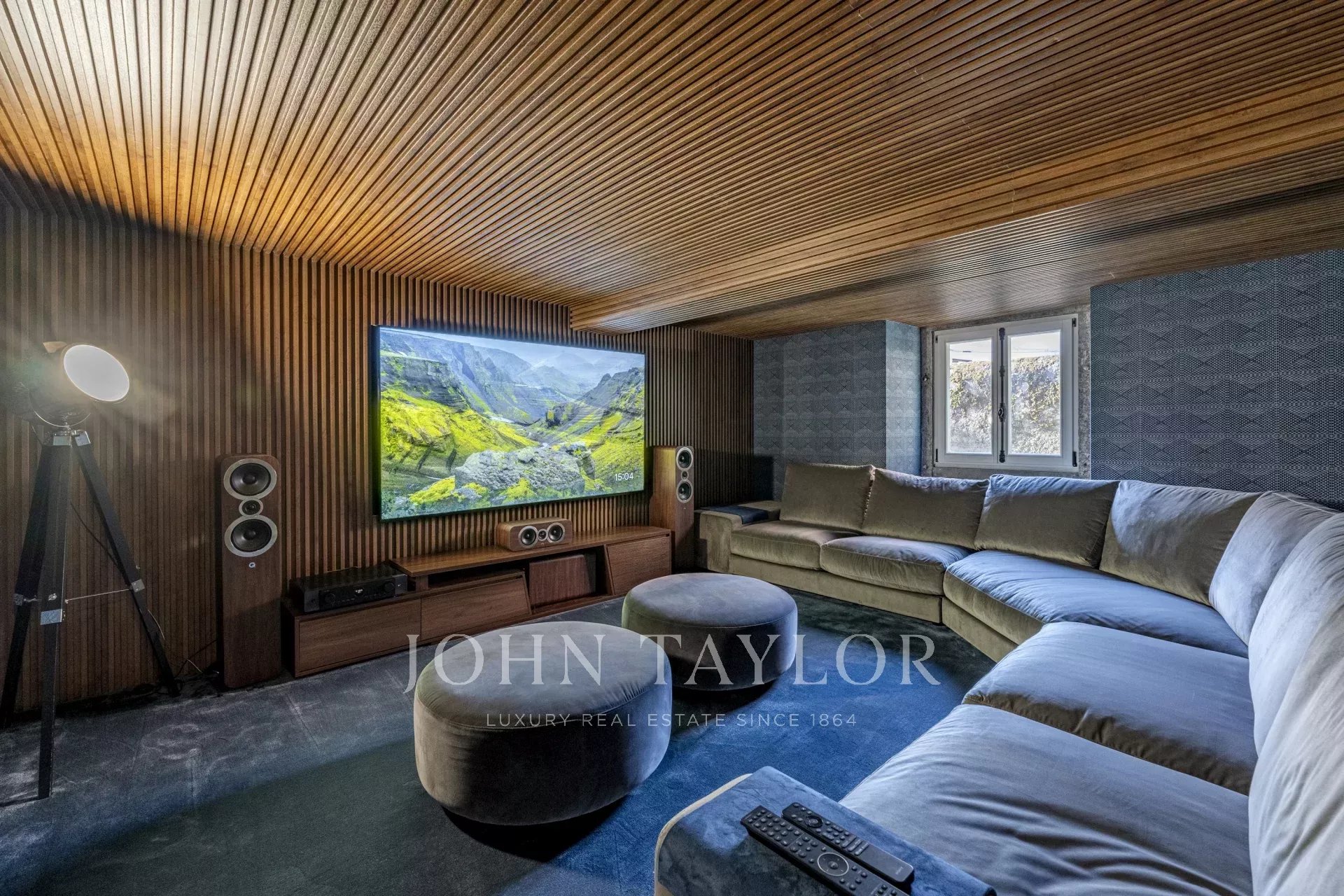 La planta inferior está dedicada al ocio, con una sala de televisión insonorizada, una bodega, sauna, lavandería y un dormitorio adicional.