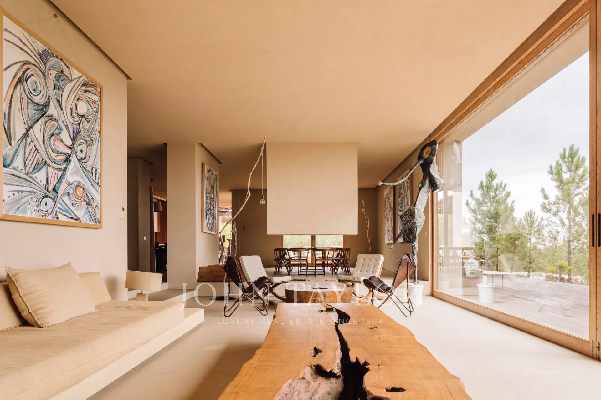 La propiedad cuenta con cuatro amplios dormitorios en suite, cada uno con su propia terraza privada de madera, y dos salas de estar con impresionantes vistas. Uno con vistas a la piscina de 96 m2 y el otro a los tranquilos bosques de pinos y a la belleza natural de Comporta. El diseño de la villa abarca la vida interior-exterior, con una gran cocina totalmente equipada, despensa y amplio espacio de almacenamiento.