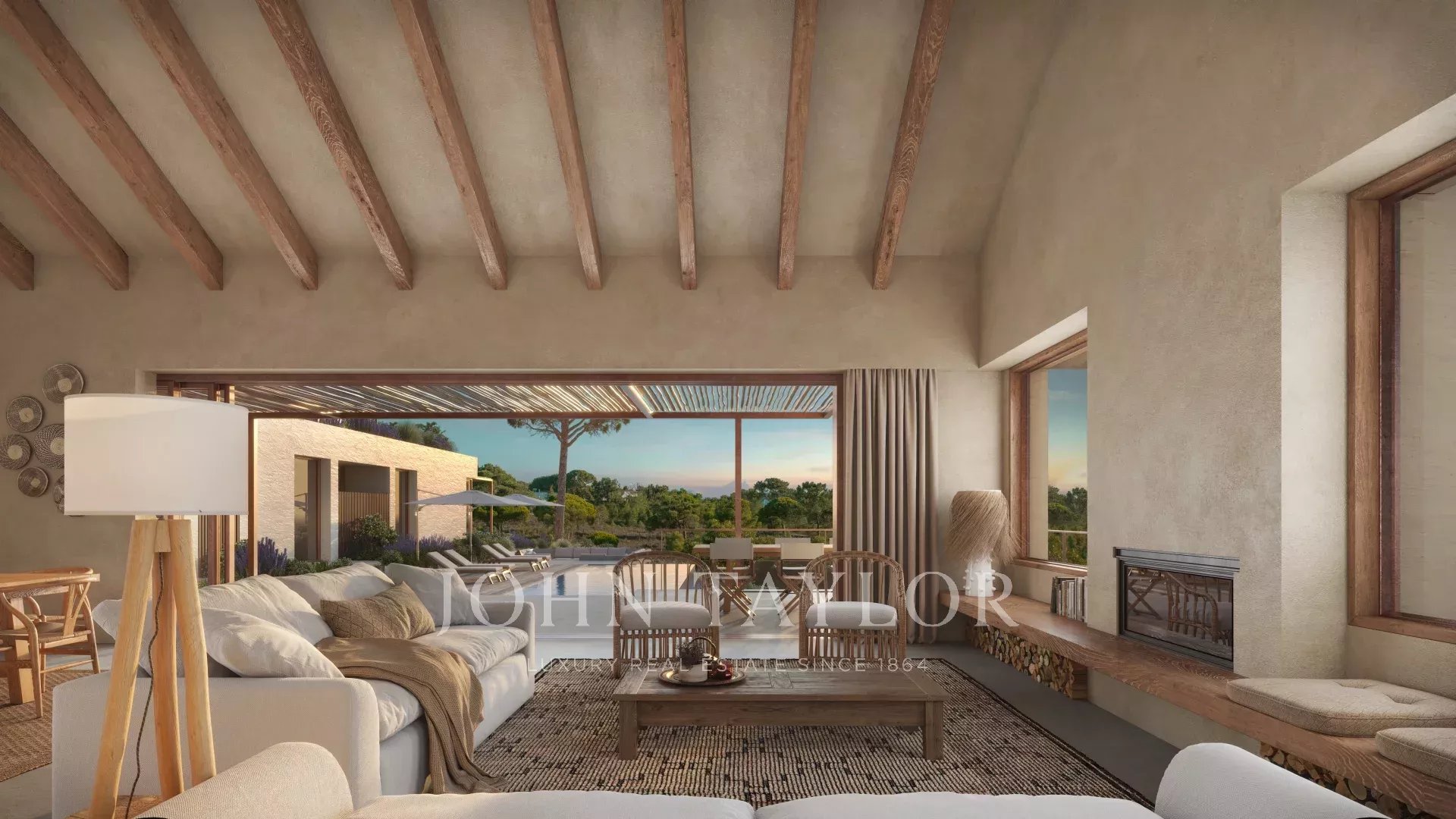 Las zonas exteriores incluirán 100 m² de terrazas de madera, una piscina climatizada de 50 m², una zona de fire pit para las noches más frescas y una terraza en la planta superior de 70 m² — perfecta para disfrutar del paisaje.