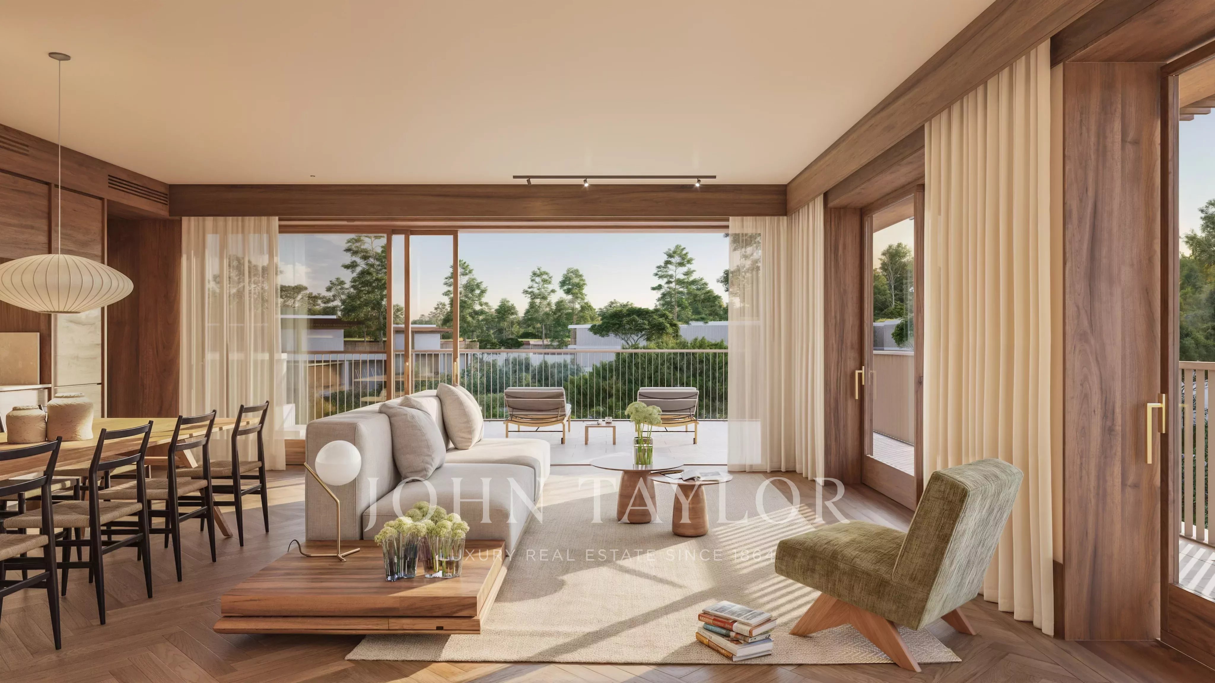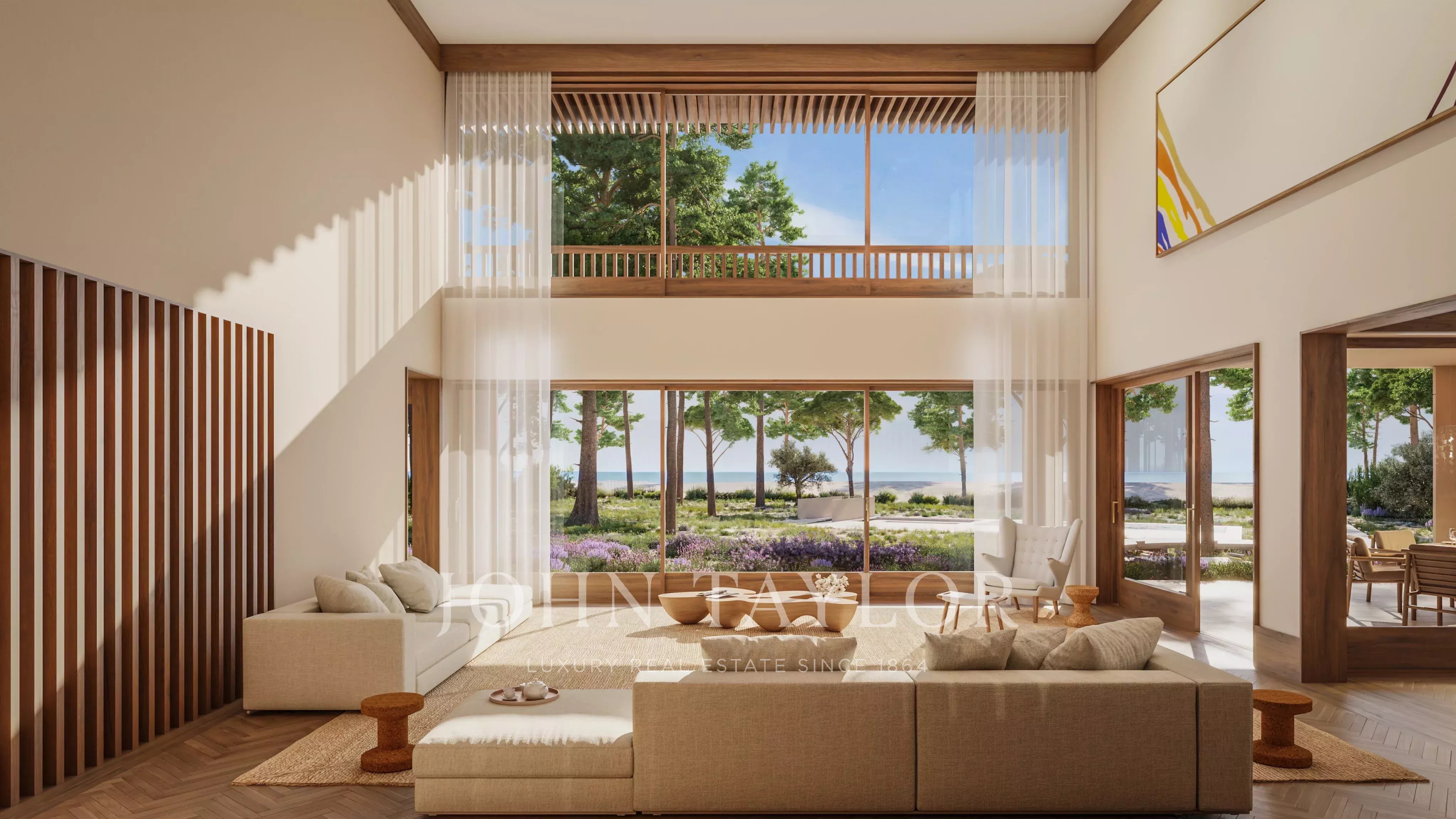 Arriba, hay una segunda zona de estar, una suite principal y dos dormitorios en suite, todos con acceso a un gran balcón con vistas impresionantes.