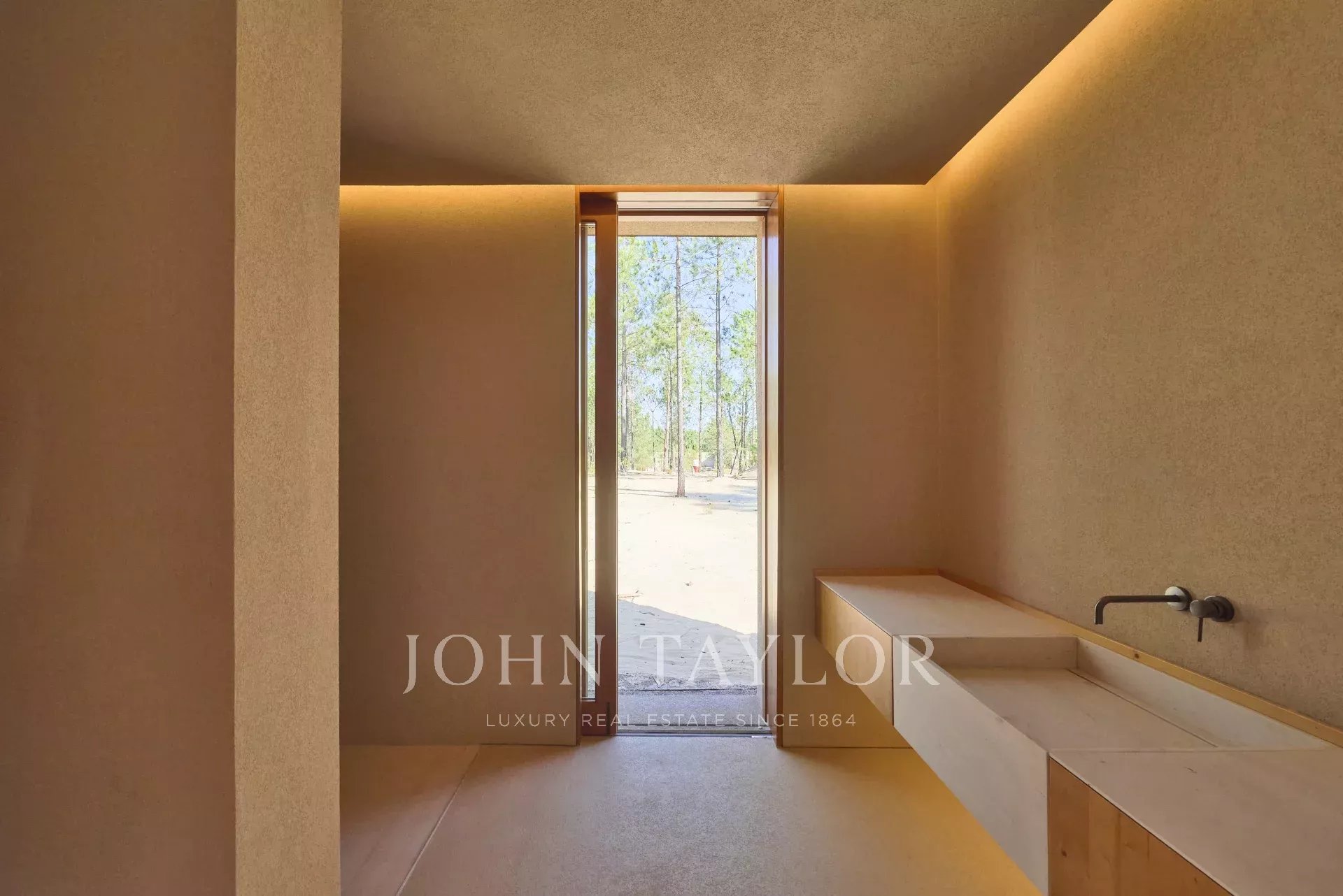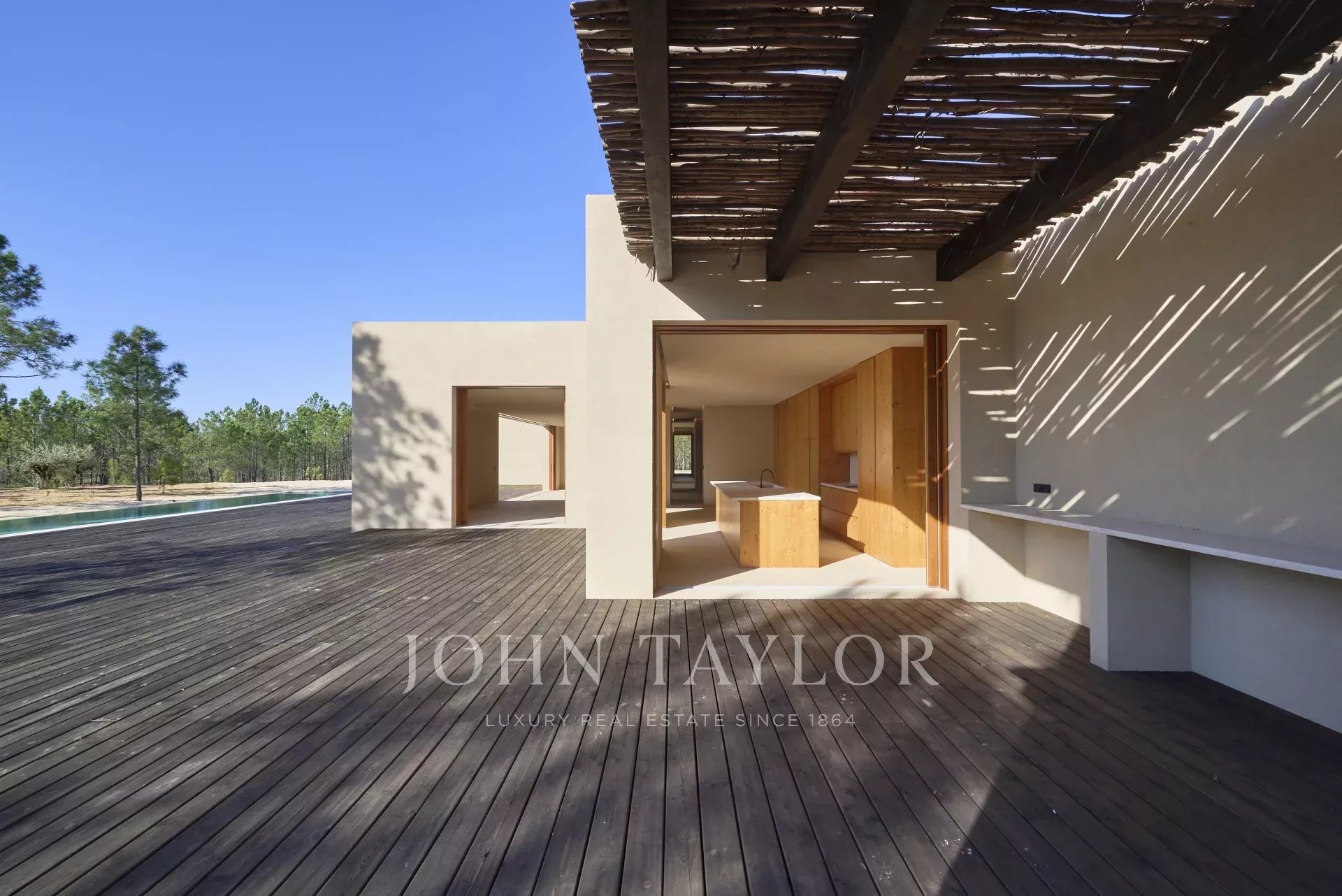 La propiedad cuenta con cuatro amplios dormitorios en suite, cada uno con su propia terraza privada de madera, y dos salas de estar con impresionantes vistas. Uno con vistas a la piscina de 96 m2 y el otro a los tranquilos bosques de pinos y a la belleza natural de Comporta. El diseño de la villa abarca la vida interior-exterior, con una gran cocina totalmente equipada, despensa y amplio espacio de almacenamiento.