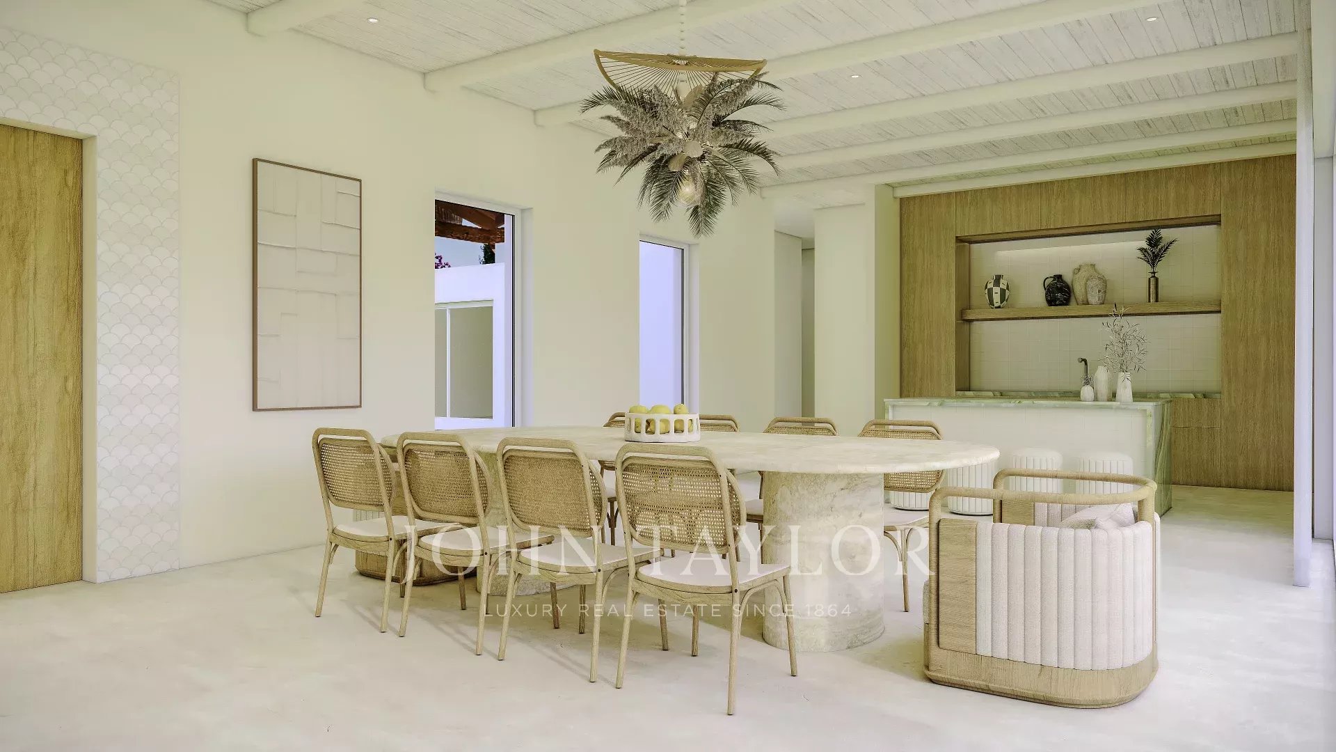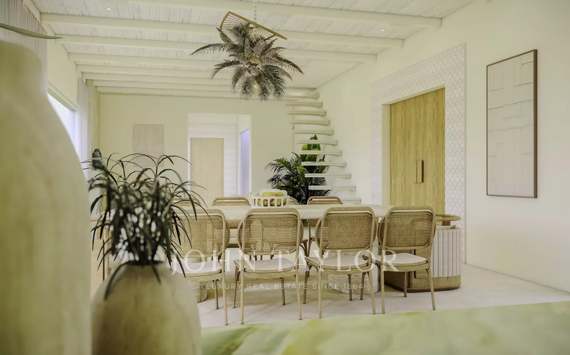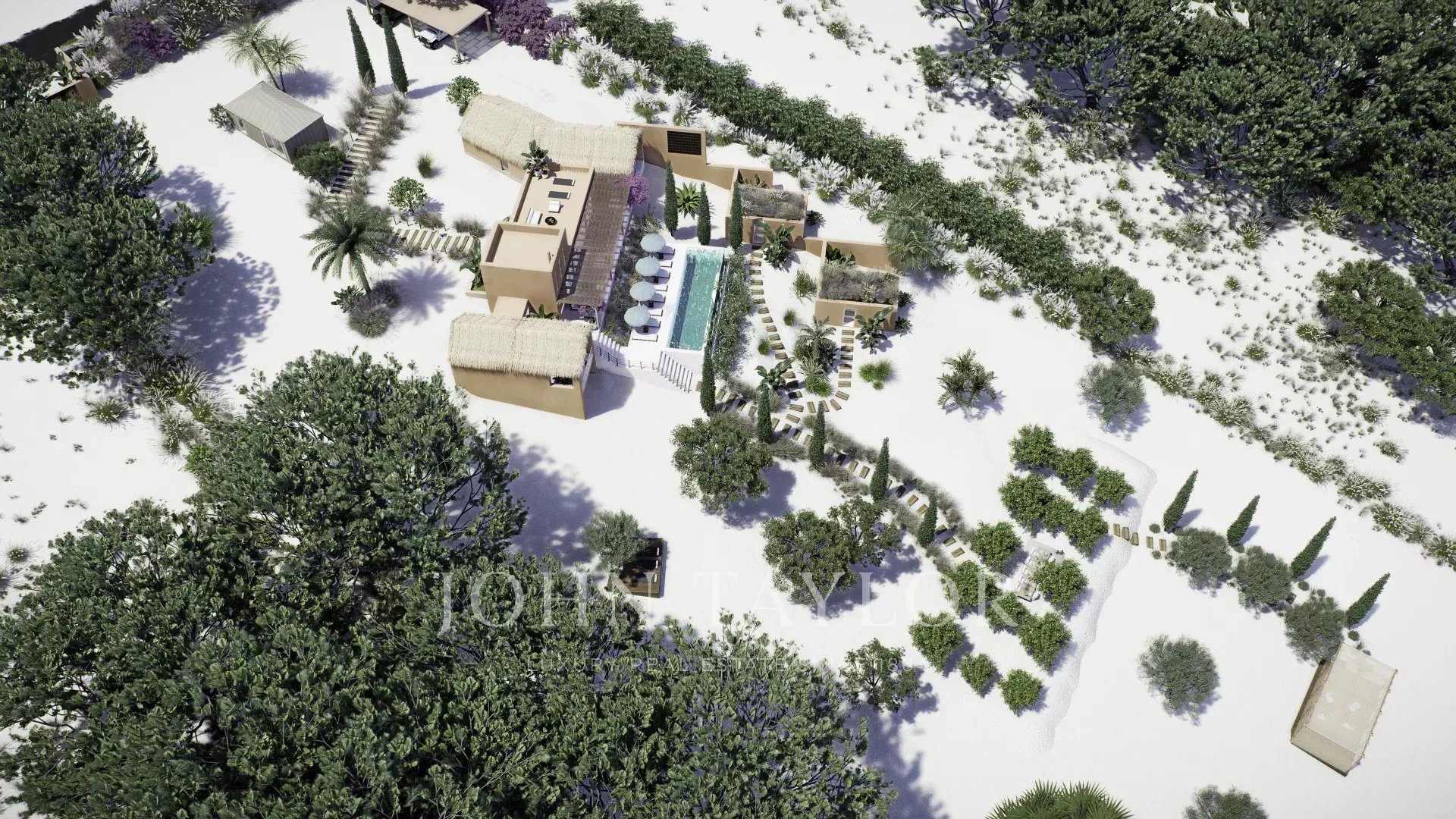 Diseñada con una arquitectura contemporánea, la propiedad consta de una vivienda principal y dos cabañas independientes para invitados. La vivienda principal dispone de tres suites, una cocina de concepto abierto con zona de comedor y salón, tres terrazas, azotea y gimnasio. Cada cabaña cuenta con una suite y una terraza privada. La propiedad se vende completamente amueblada e incluye además una bodega exterior.