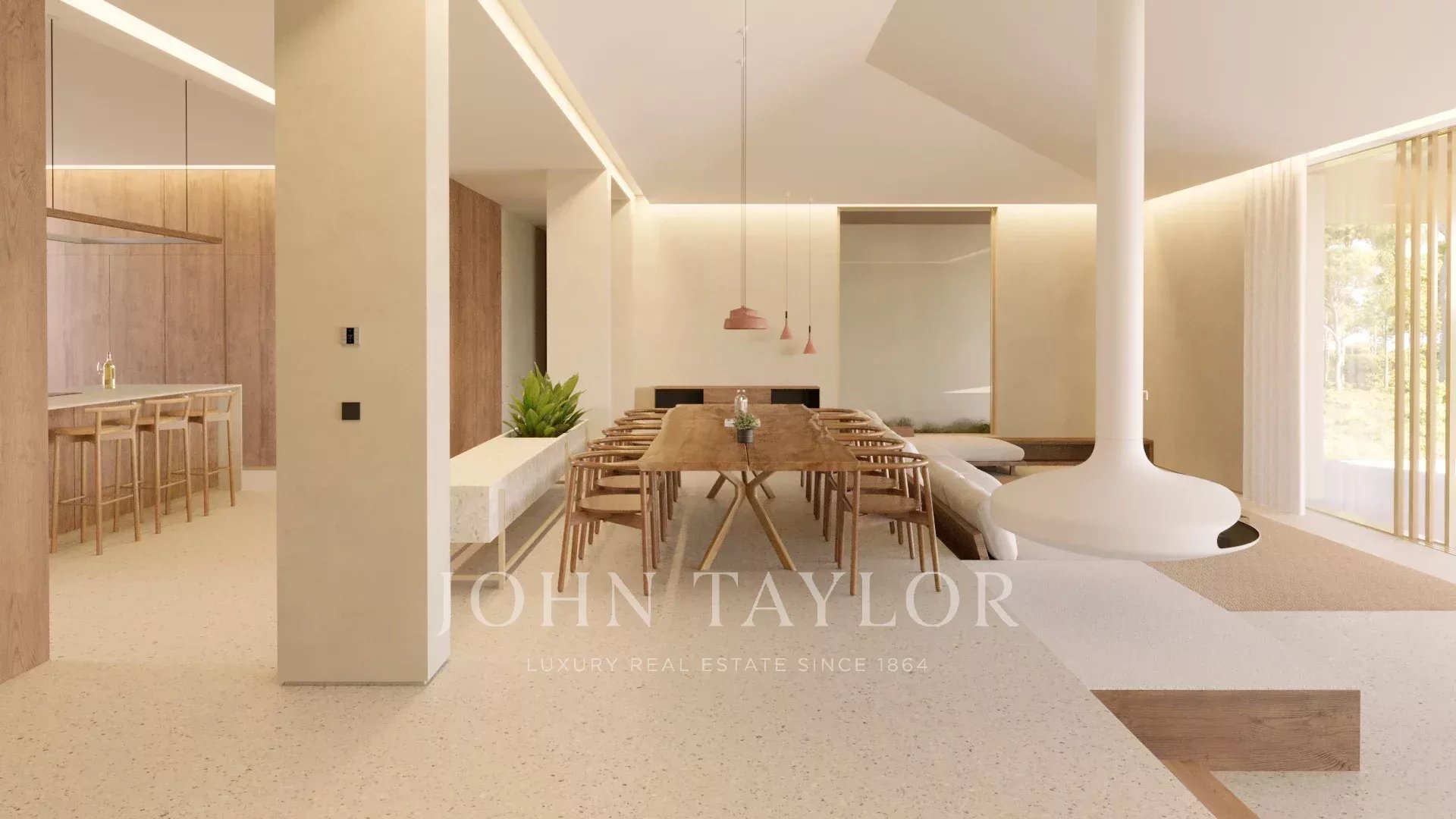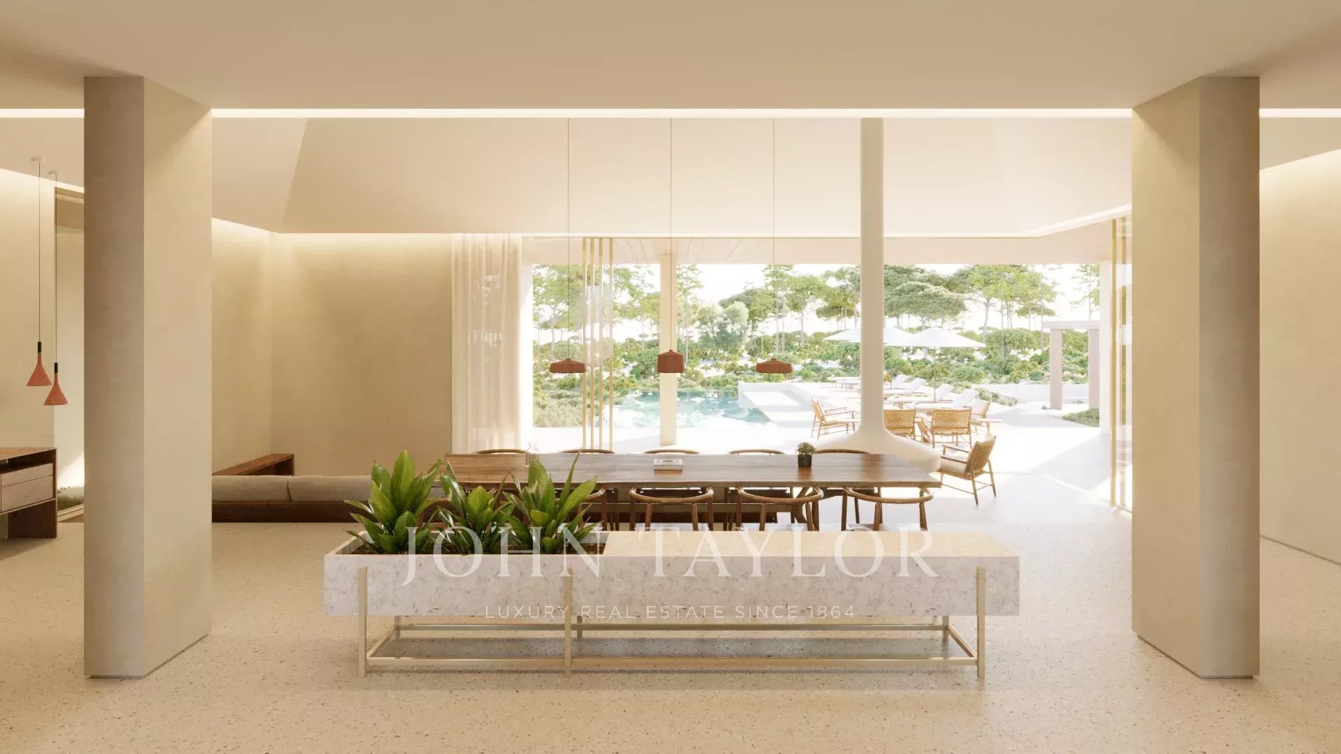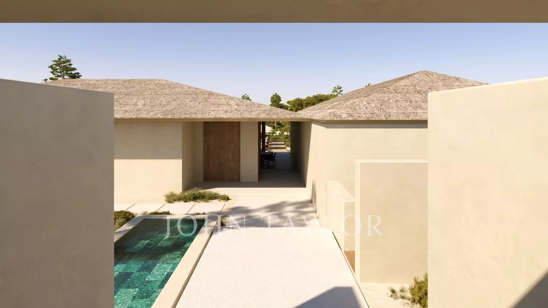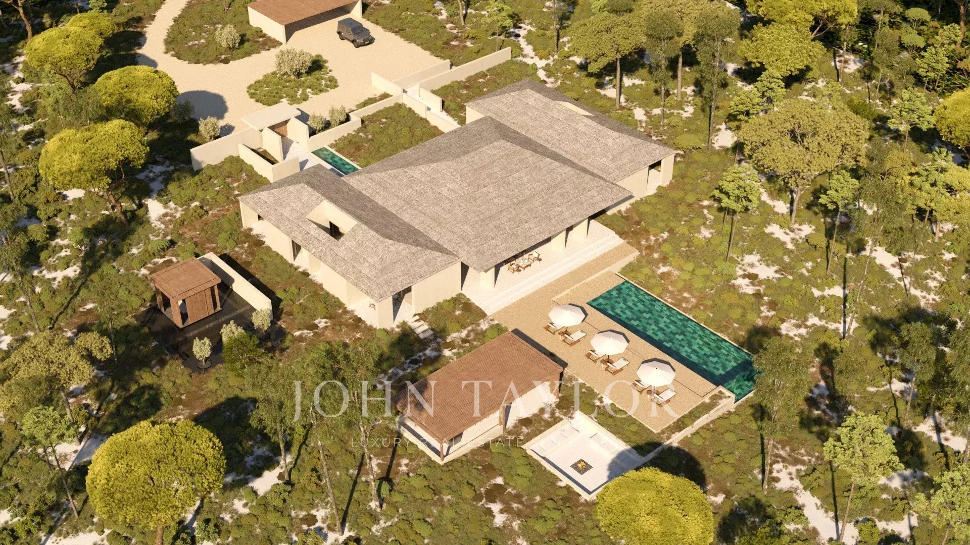 Ubicada en un terreno de 15.000 m², la villa de 665 m² cuenta con 4 suites espaciosas con amplias terrazas privadas y 1 suite más. La vivienda dispone de una amplia zona de concepto abierto que integra cocina, comedor y sala de estar, en armonía con las vistas panorámicas del entorno, compuesto por olivares y alcornoques, así como 2 piscinas: una piscina infinita (5m x 15m) y una piscina infantil de 14 m².