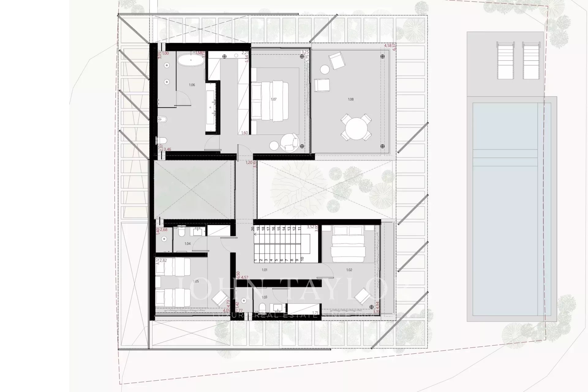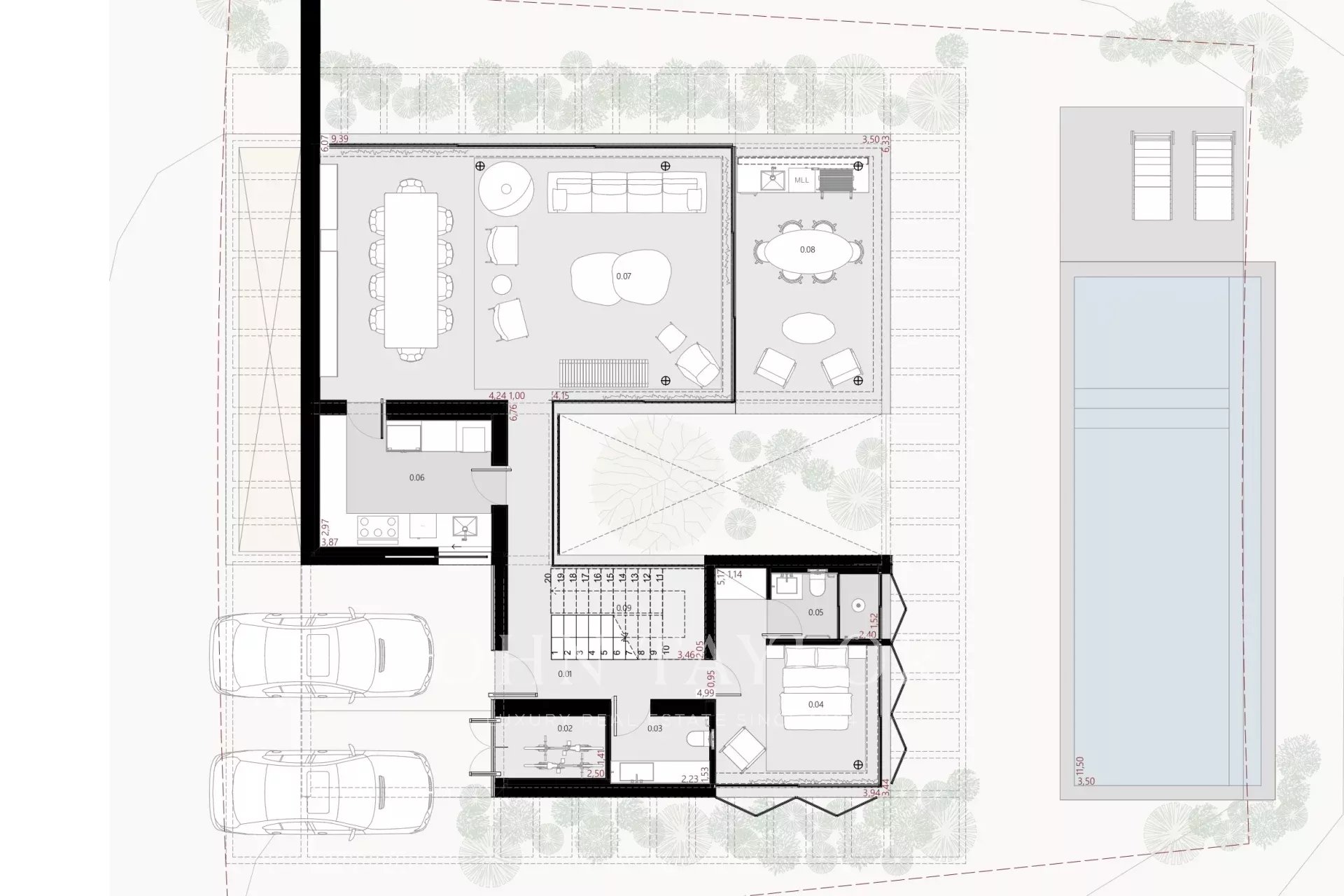 La villa ofrece cuatro dormitorios en suite, un amplio salón con acceso directo al jardín y un sótano con luz natural, preparado para un home cinema, oficina o suite adicional. También incluye una zona de lavandería y de servicio. La finalización está prevista para finales de 2025.