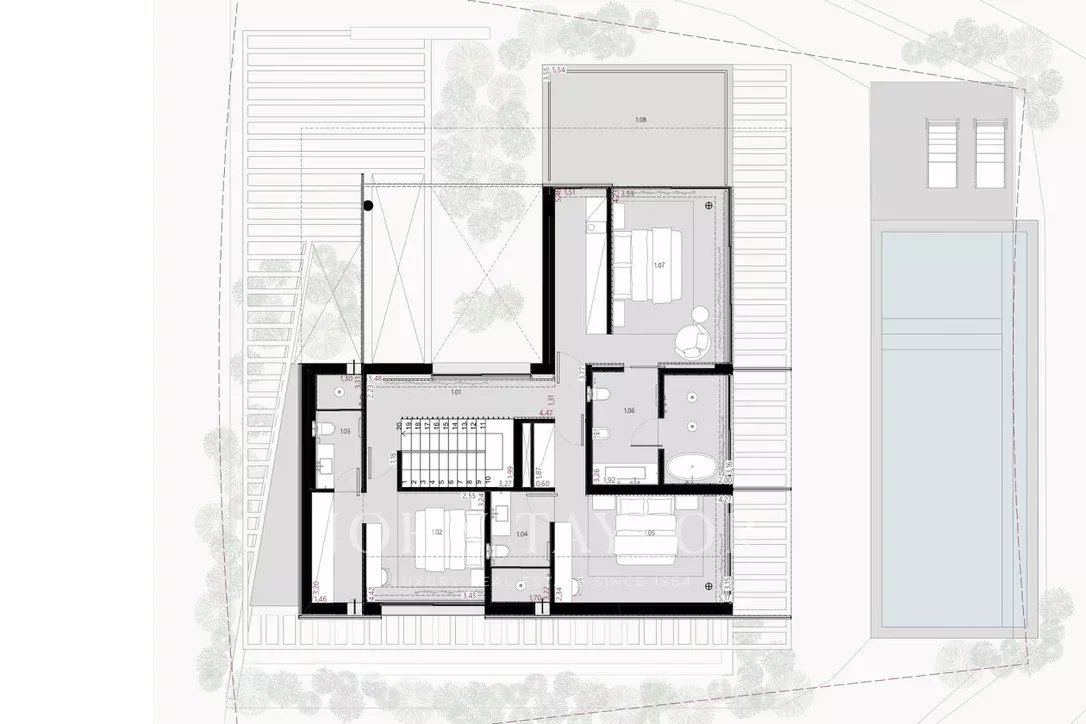 La villa ofrece cuatro dormitorios en suite, un amplio salón con acceso directo al jardín y un sótano con luz natural, preparado para un home cinema, oficina o suite adicional. También incluye una zona de lavandería y de servicio. La finalización está prevista para finales de 2025.