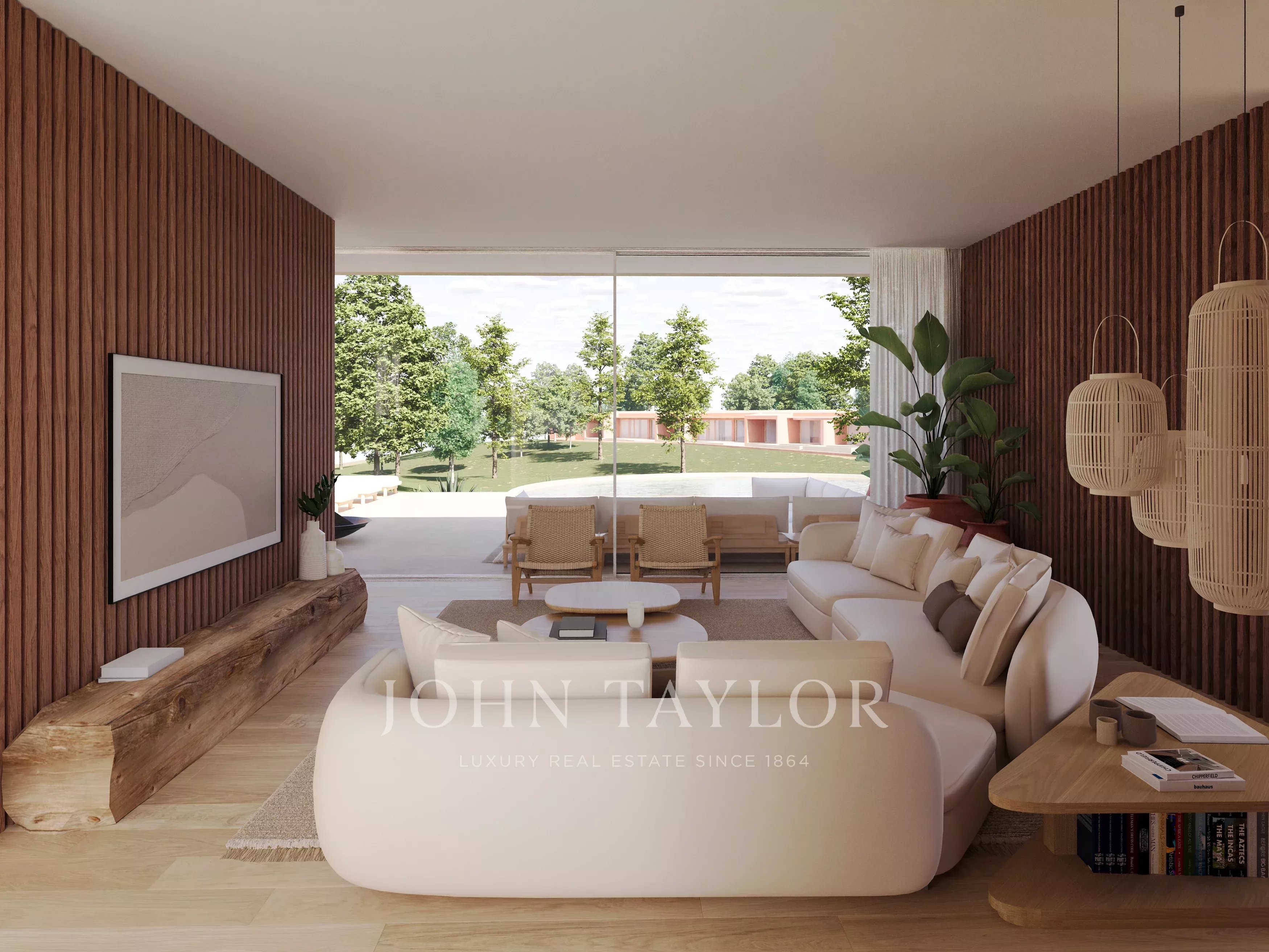 La villa ofrece 235 m2 de superficie bruta privada, organizada en torno a un generoso espacio habitable de 84 m2 que reúne la sala de estar, el comedor y la cocina. Grandes aberturas permiten abundante luz natural y crean una conexión directa con las terrazas y zonas al aire libre.