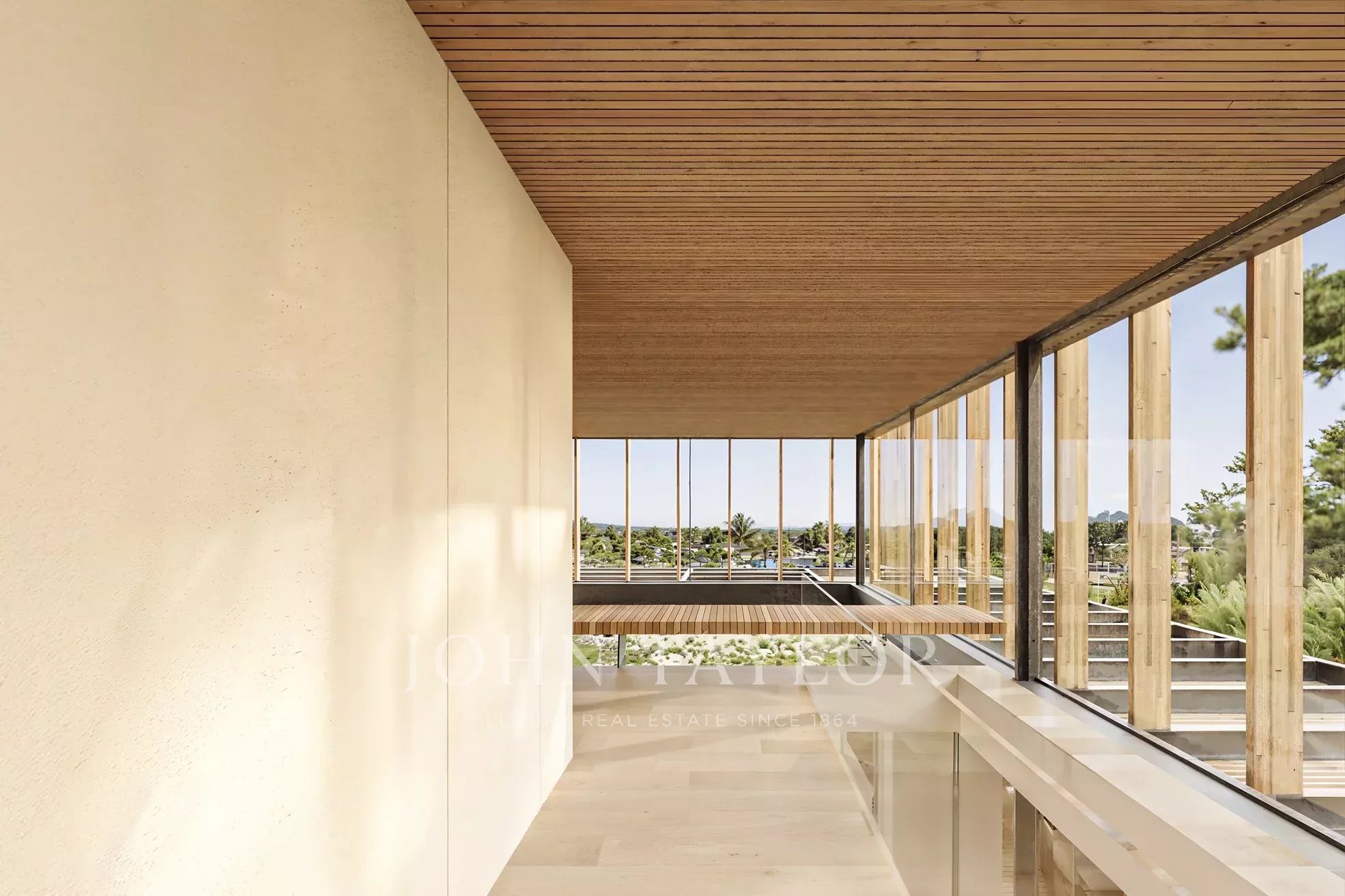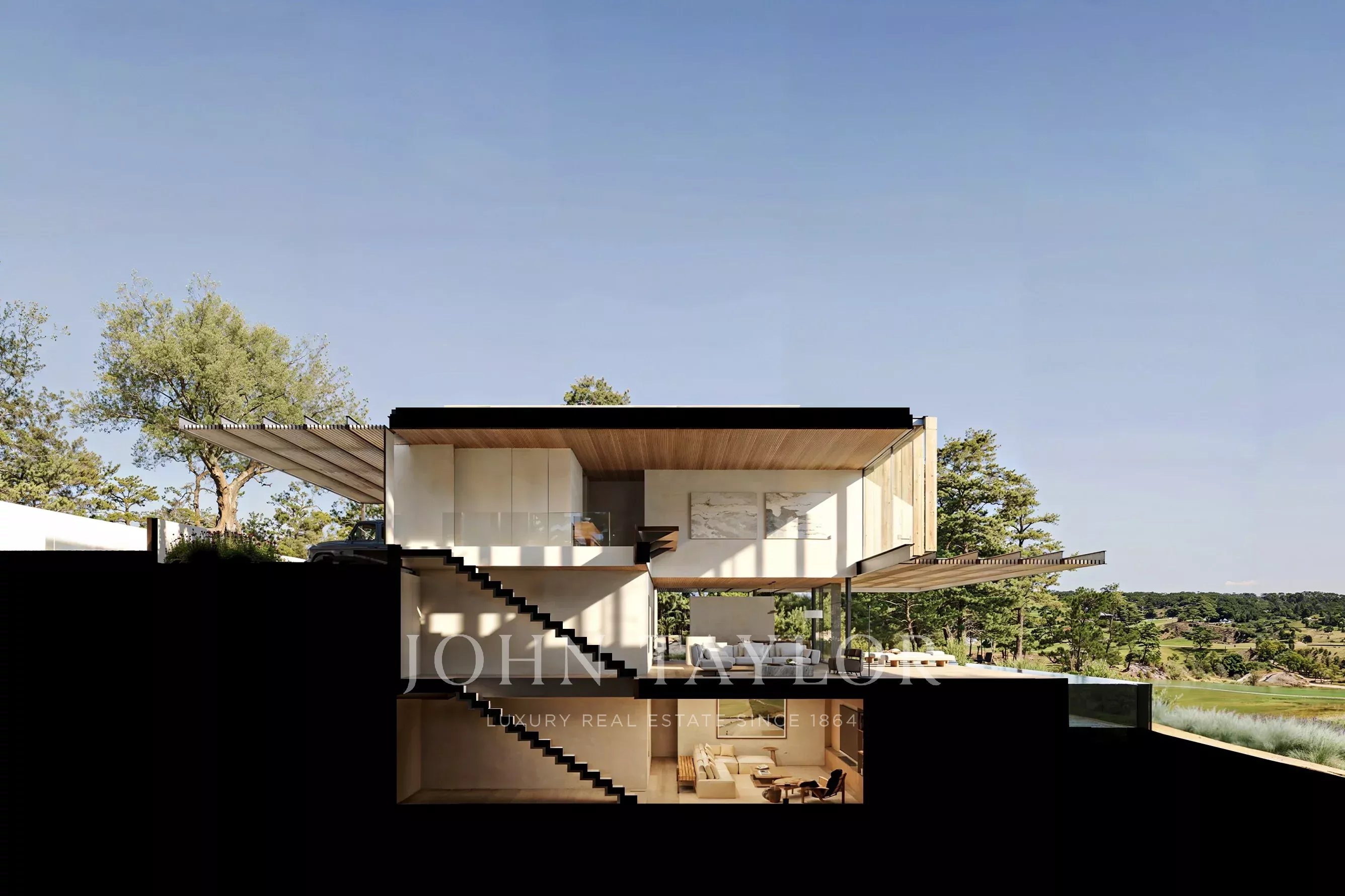 Ubicada en una parcela de 1.000 m², la villa ofrece aproximadamente 330 m² de superficie habitable interior complementada con 125 m² de espacio de cubierta exterior. La arquitectura explora la transparencia, la ligereza y la fluidez, integrando interior y exterior a través de amplios acristalamientos, pérgolas y brise-soleils que crean espacios de transición sombreados.