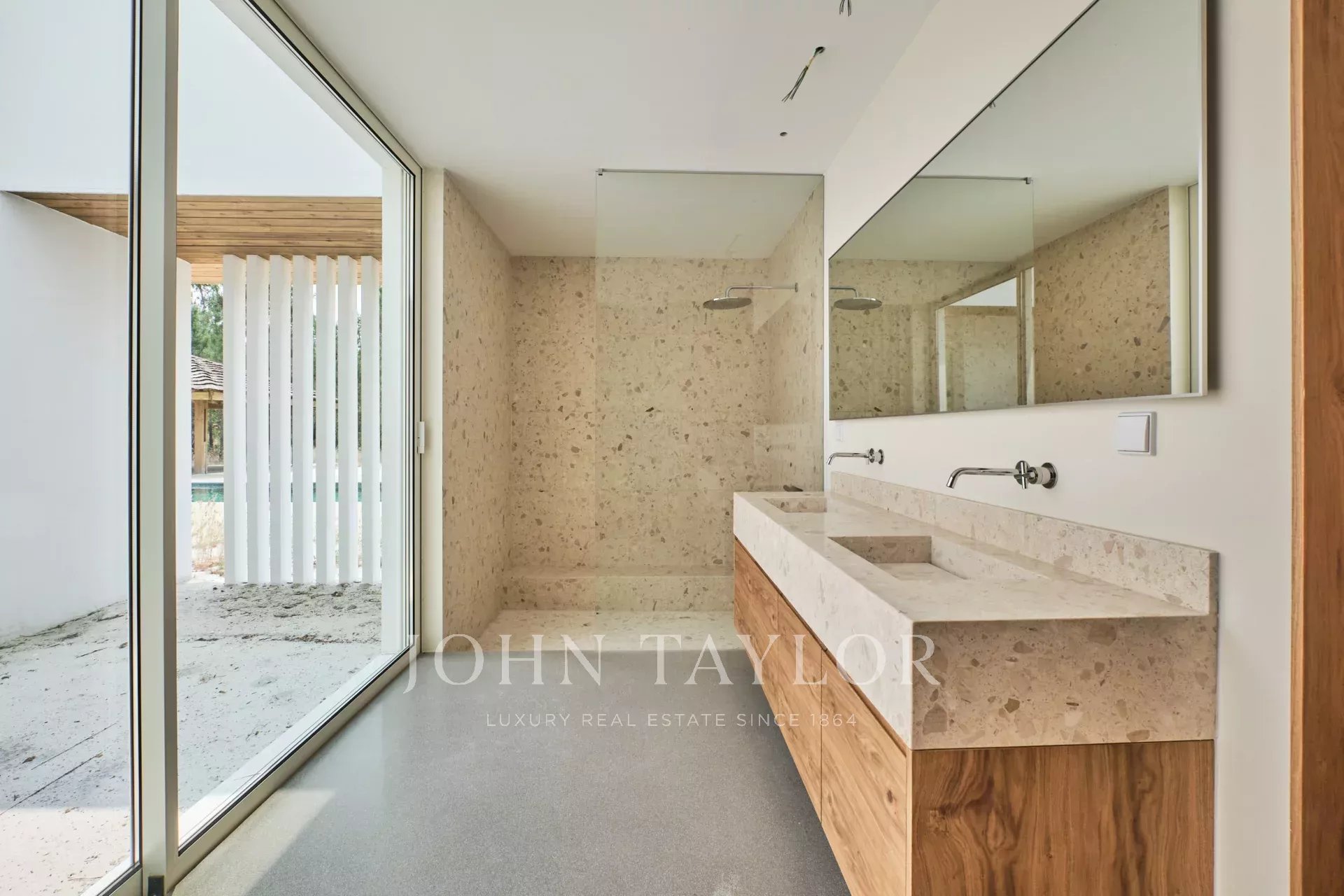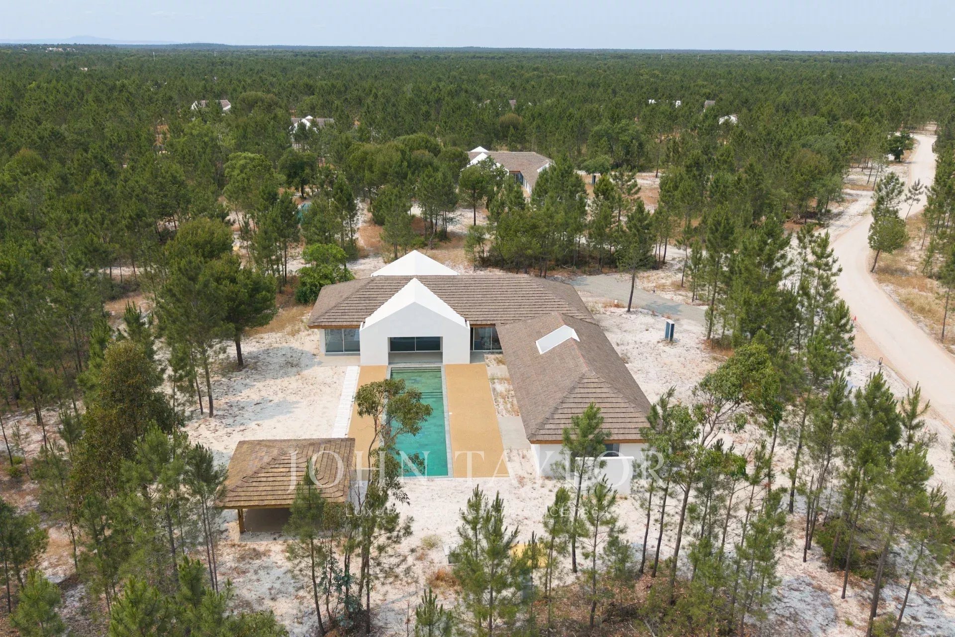 Ubicada en el prestigioso resort Spatia Estates Comporta, esta villa de 480,3 m² destaca por su amplio terreno de 11.256 m², ofreciendo total privacidad, confort y una fuerte conexión con la naturaleza. La propiedad se compone de dos edificaciones bien integradas, con dos amplios dormitorios y una suite principal con entrada independiente — todos con baño privado.