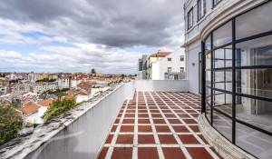T2, con GPA 189m2 y 31m2 terraza, con 2 dormitorios, 2 baños, comedor, cocina y una oficina con vistas de 360 grados sobre la ciudad de Lisboa.
