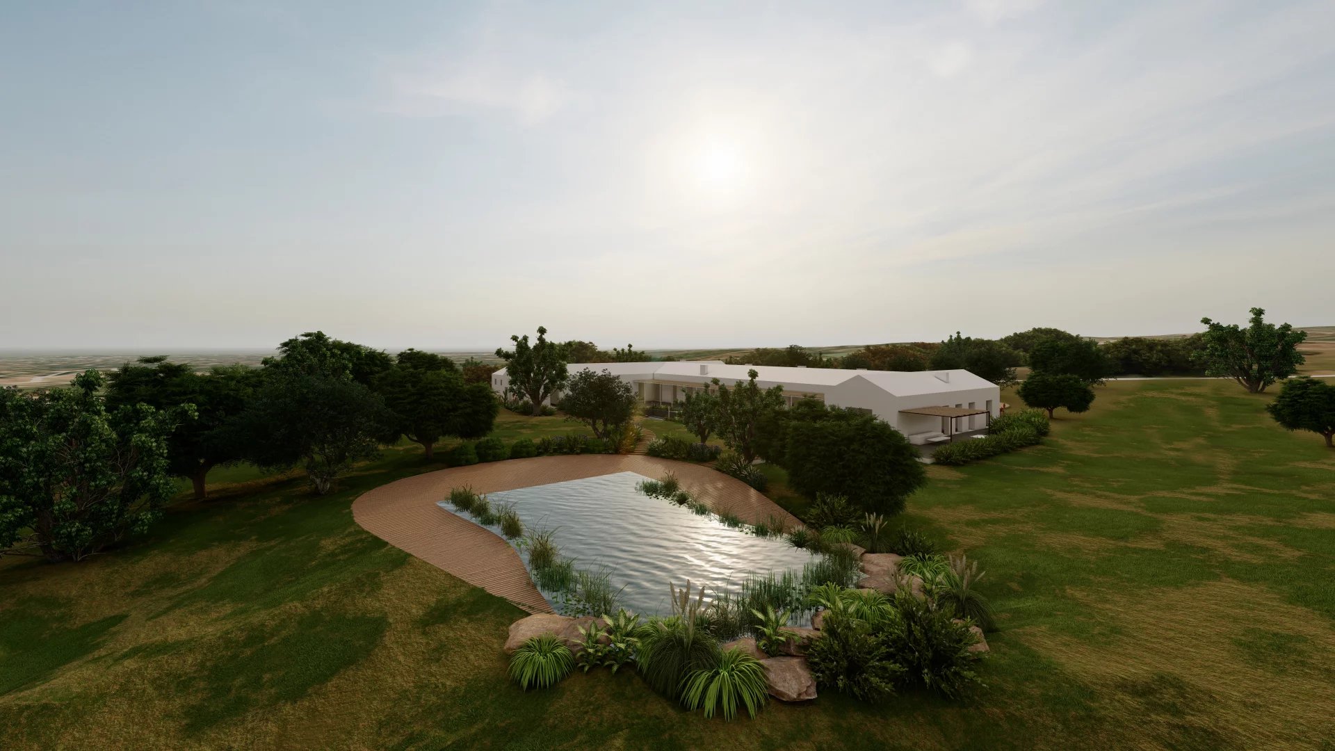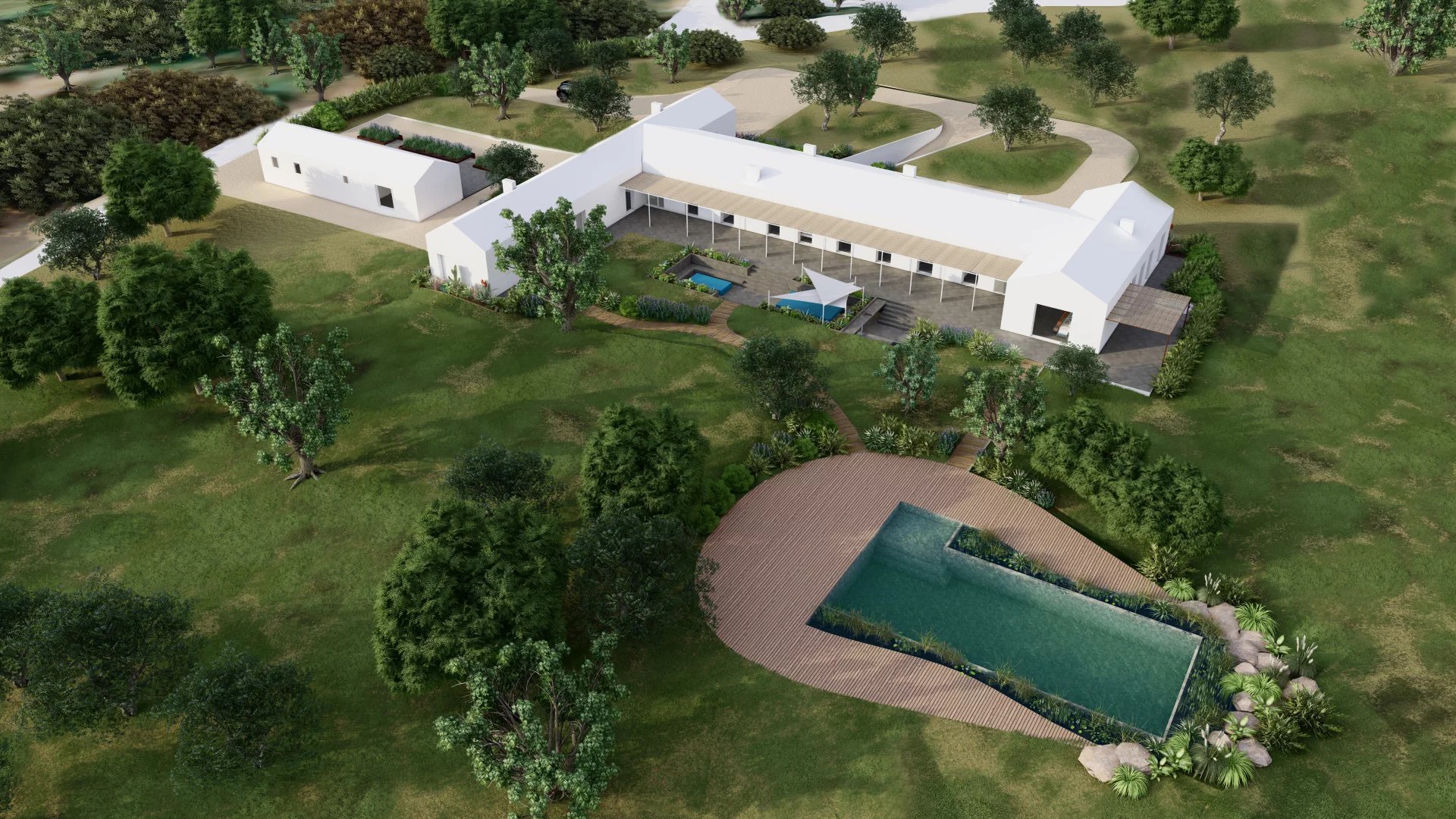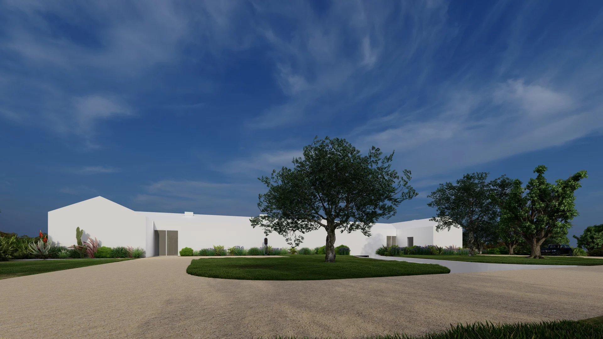 La residencia propuesta cuenta con interiores generosos y luminosos, espacios abiertos, acristalamiento de suelo a techo y amplias terrazas que extienden las zonas de estar al exterior, enmarcando el tranquilo entorno rural y las célebres puestas de sol de la región. La arquitectura equilibra las líneas limpias y contemporáneas con el carácter sobrio de la campiña alentejana.