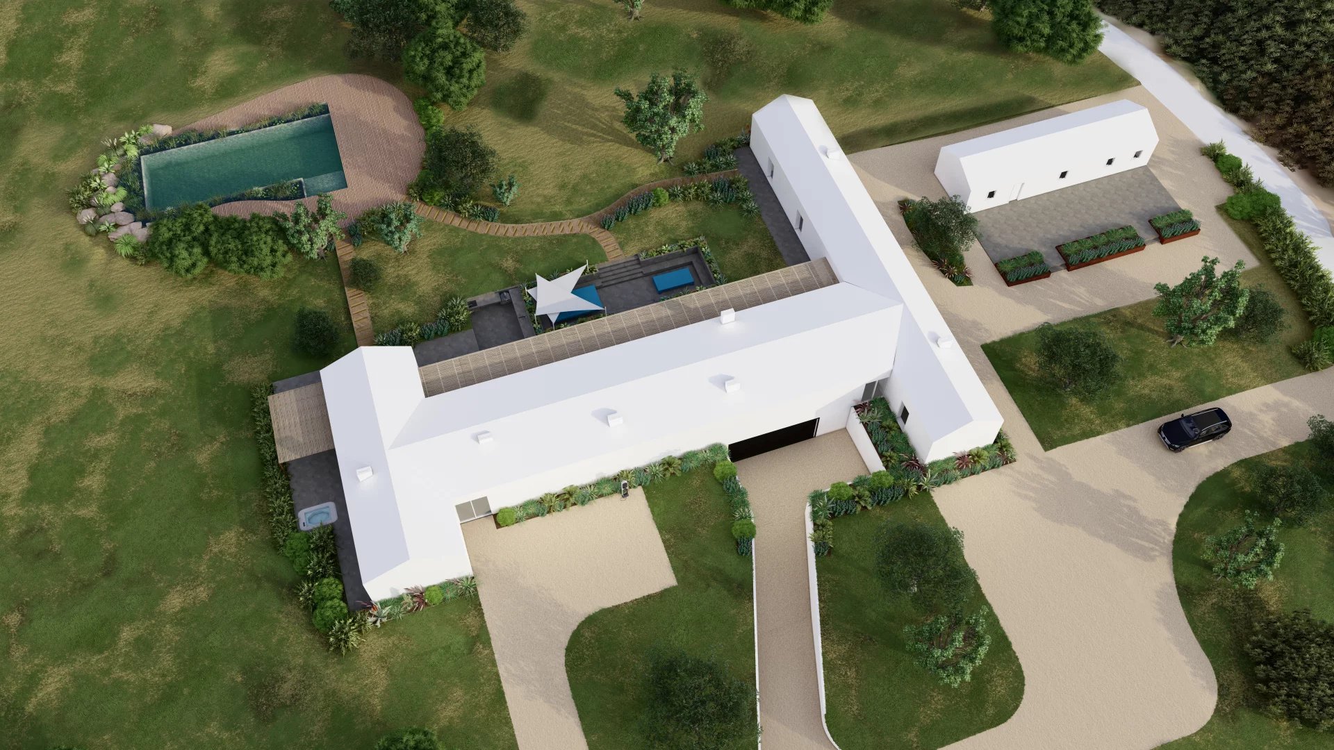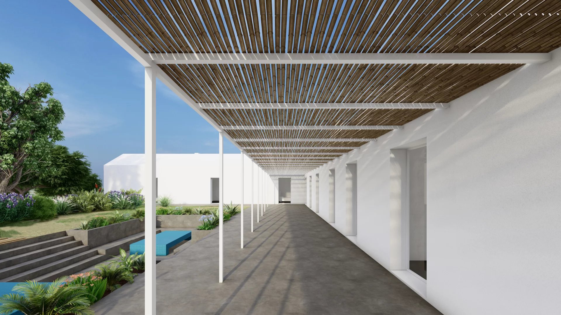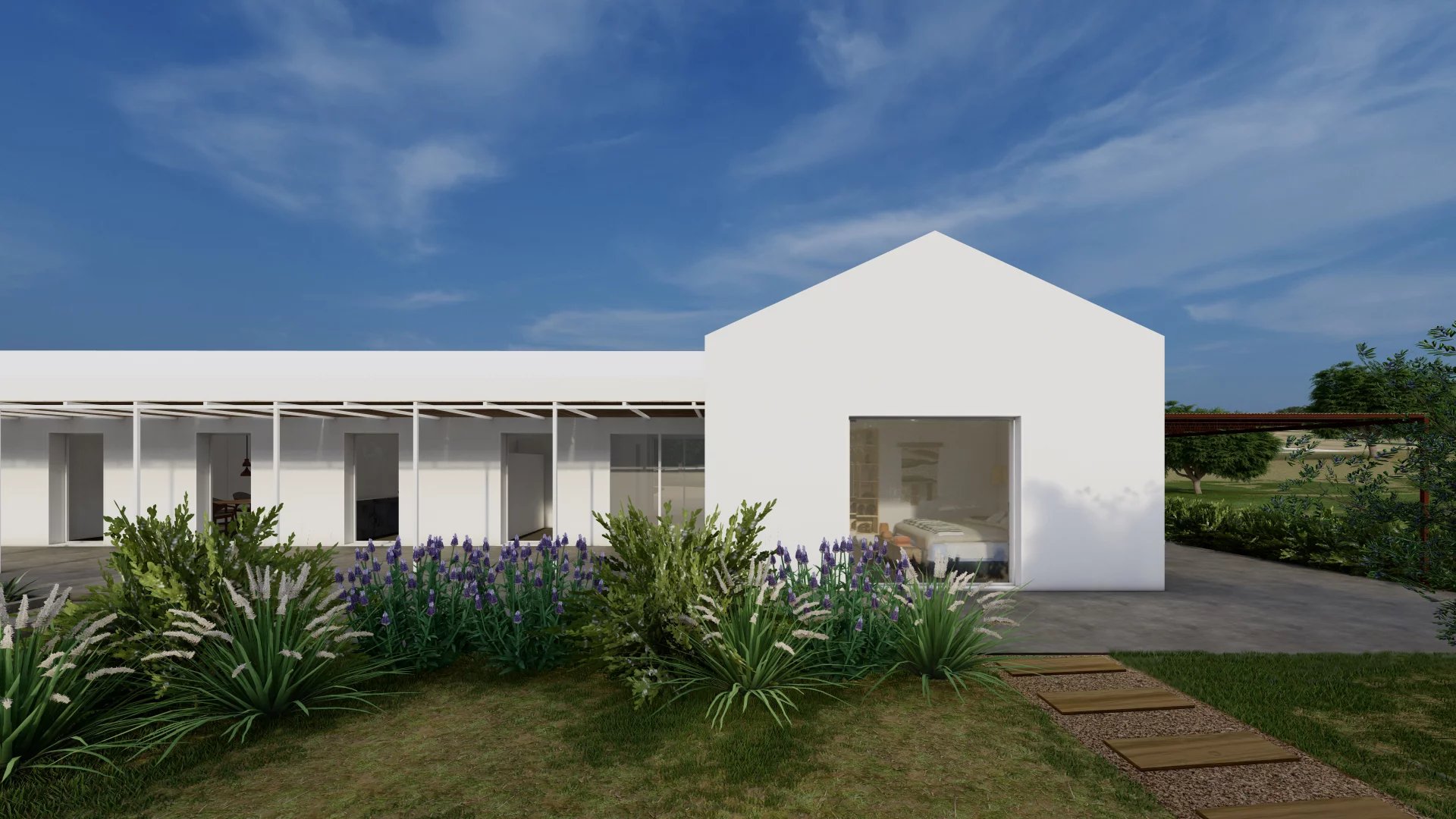 La residencia propuesta cuenta con interiores generosos y luminosos, espacios abiertos, acristalamiento de suelo a techo y amplias terrazas que extienden las zonas de estar al exterior, enmarcando el tranquilo entorno rural y las célebres puestas de sol de la región. La arquitectura equilibra las líneas limpias y contemporáneas con el carácter sobrio de la campiña alentejana.