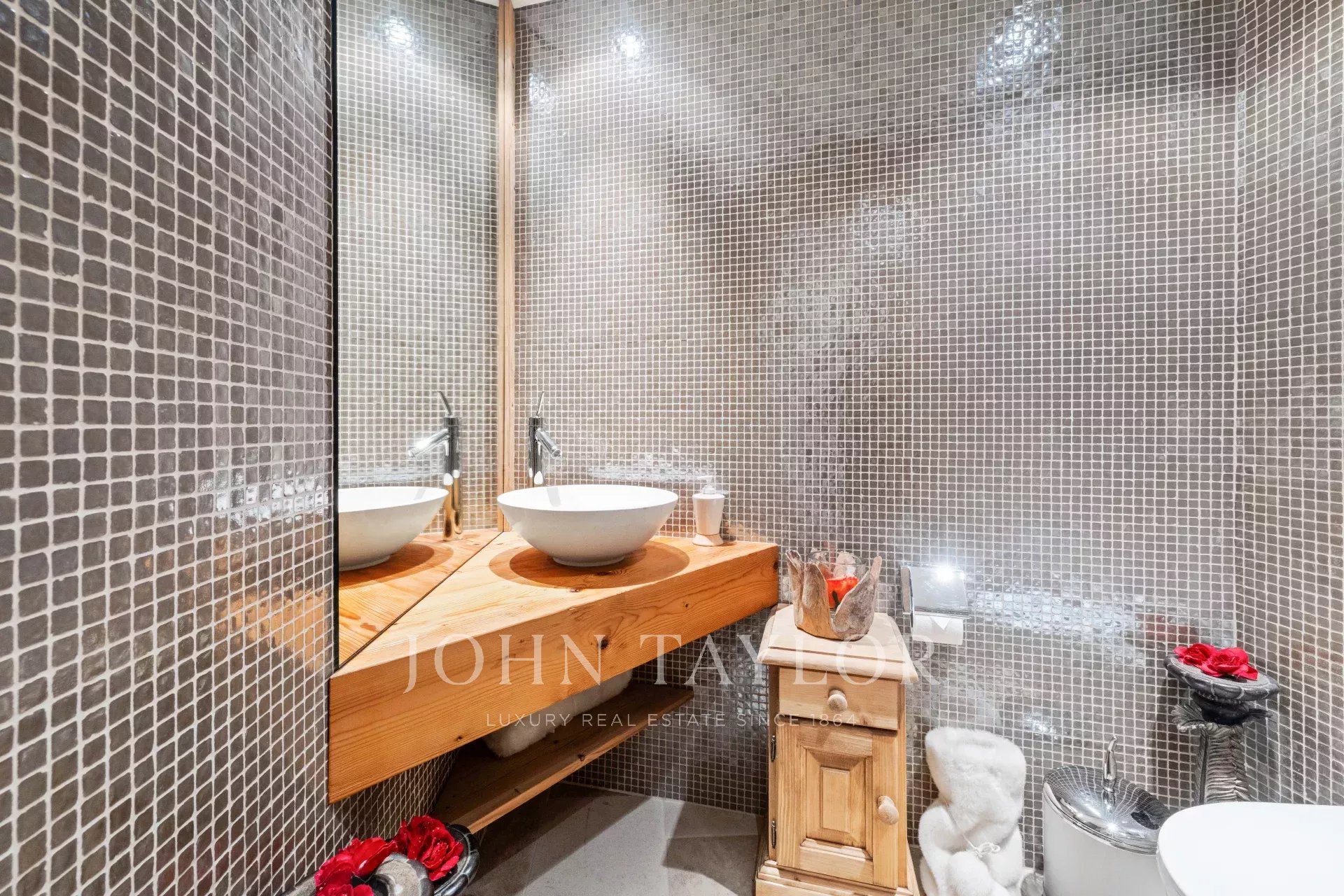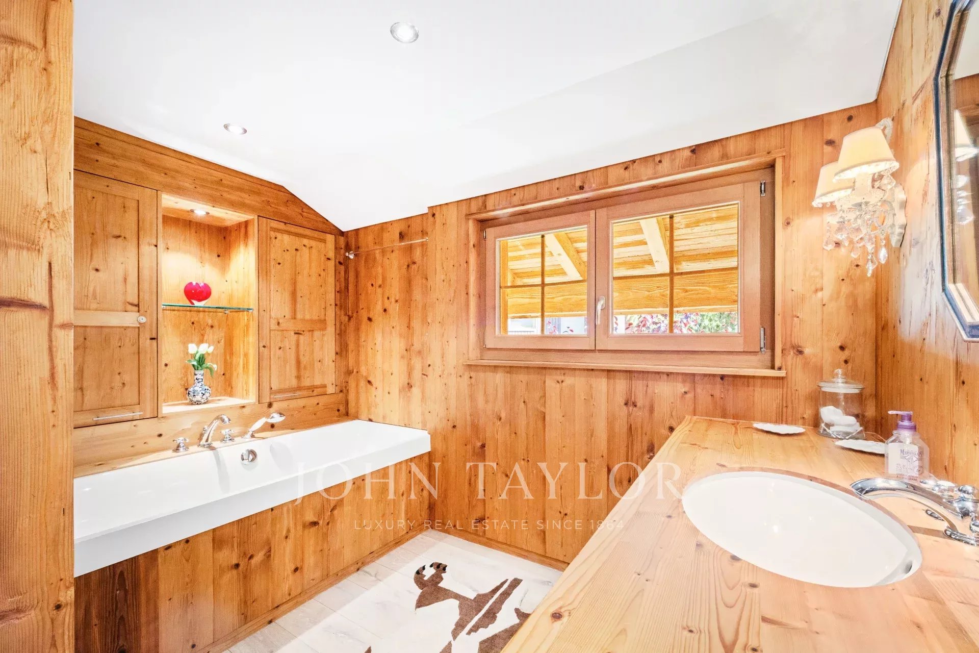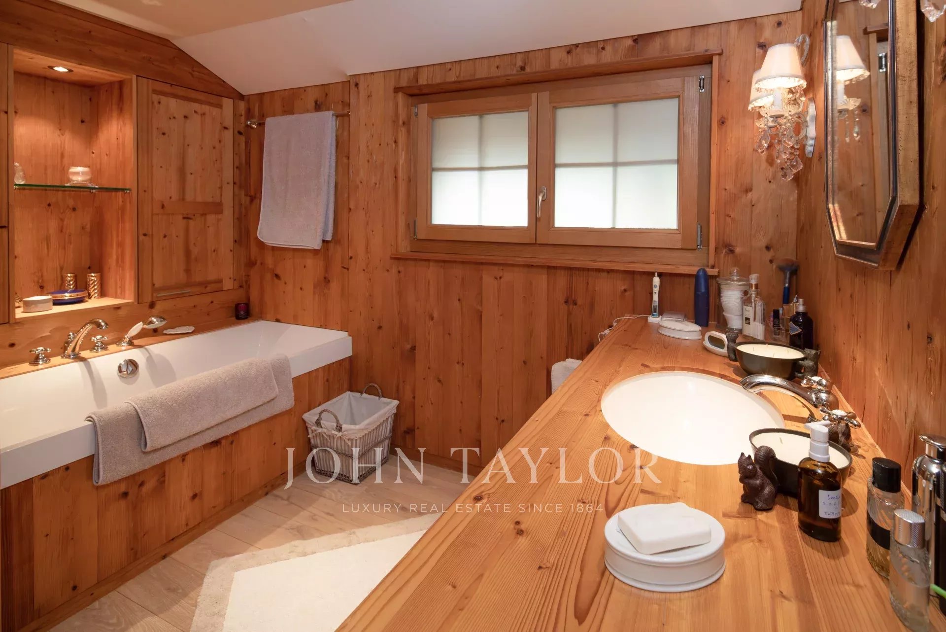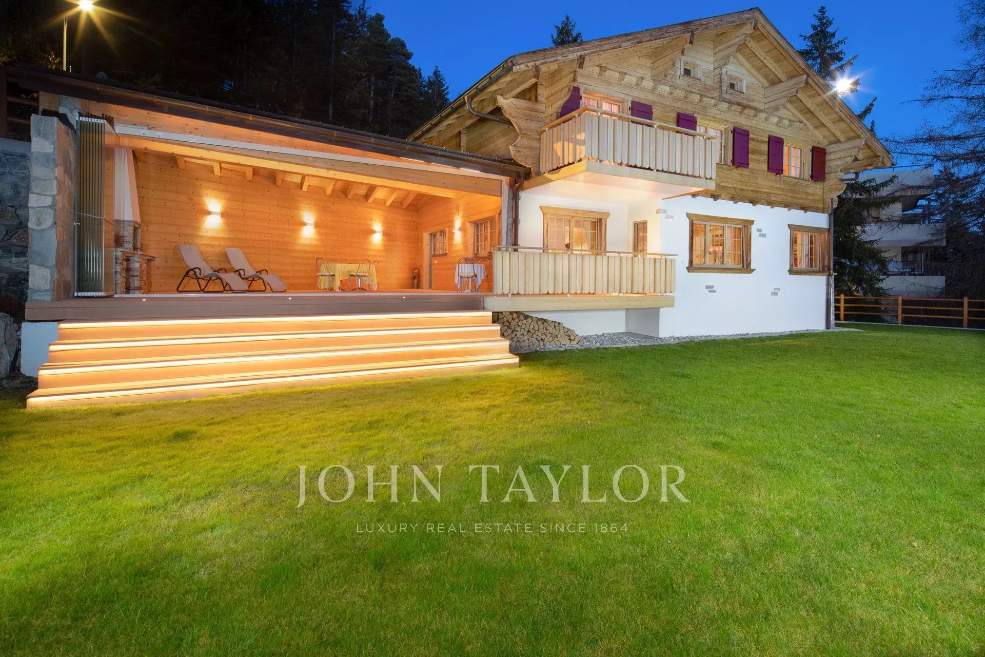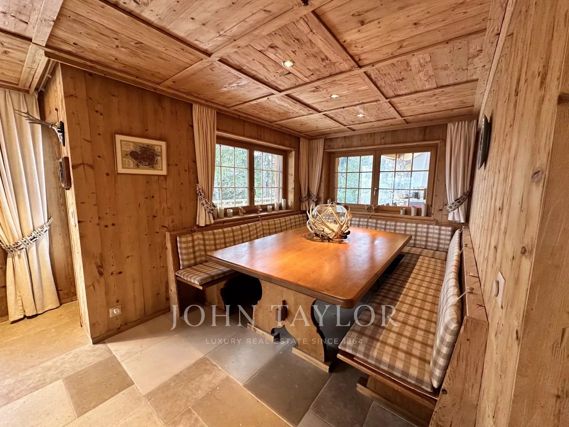 Este lujoso chalet, renovado en 2009 y 2023, le conquistará con su interior de estilo montañés. El interior de esta acogedora propiedad se ha revestido con materiales de primera calidad. Está orientado al sur, por lo que recibe mucha luz solar durante todo el día.