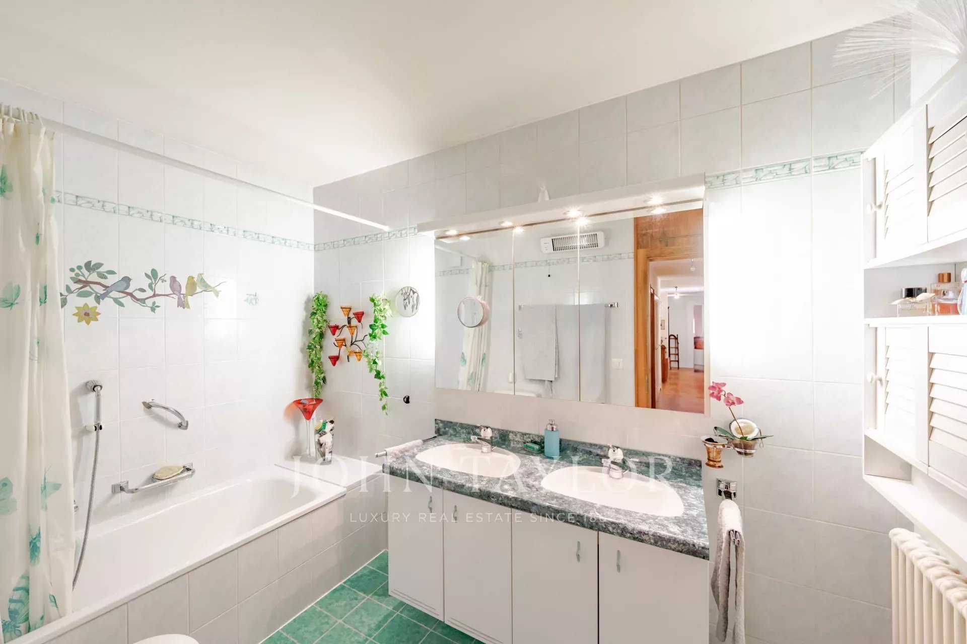 El salón principal es un espacio luminoso y amplio, ideal para reuniones familiares y cenas con amigos. Las grandes ventanas permiten la entrada de abundante luz natural, realzando la calidez de los suelos de madera. Además, la decoración cuidadosamente seleccionada le da un toque distintivo y personal al hogar.