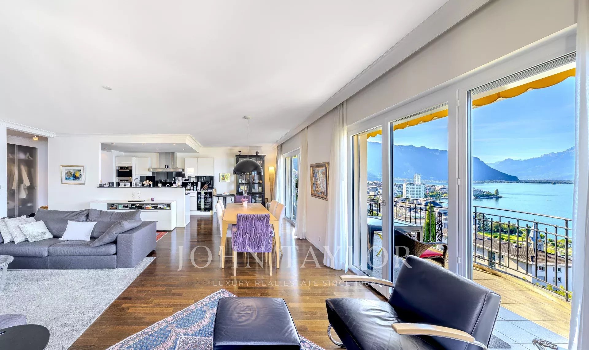 -Posición dominante que ofrece una vista panorámica excepcional del lago Lemán, las montañas y la ciudad de Montreux.