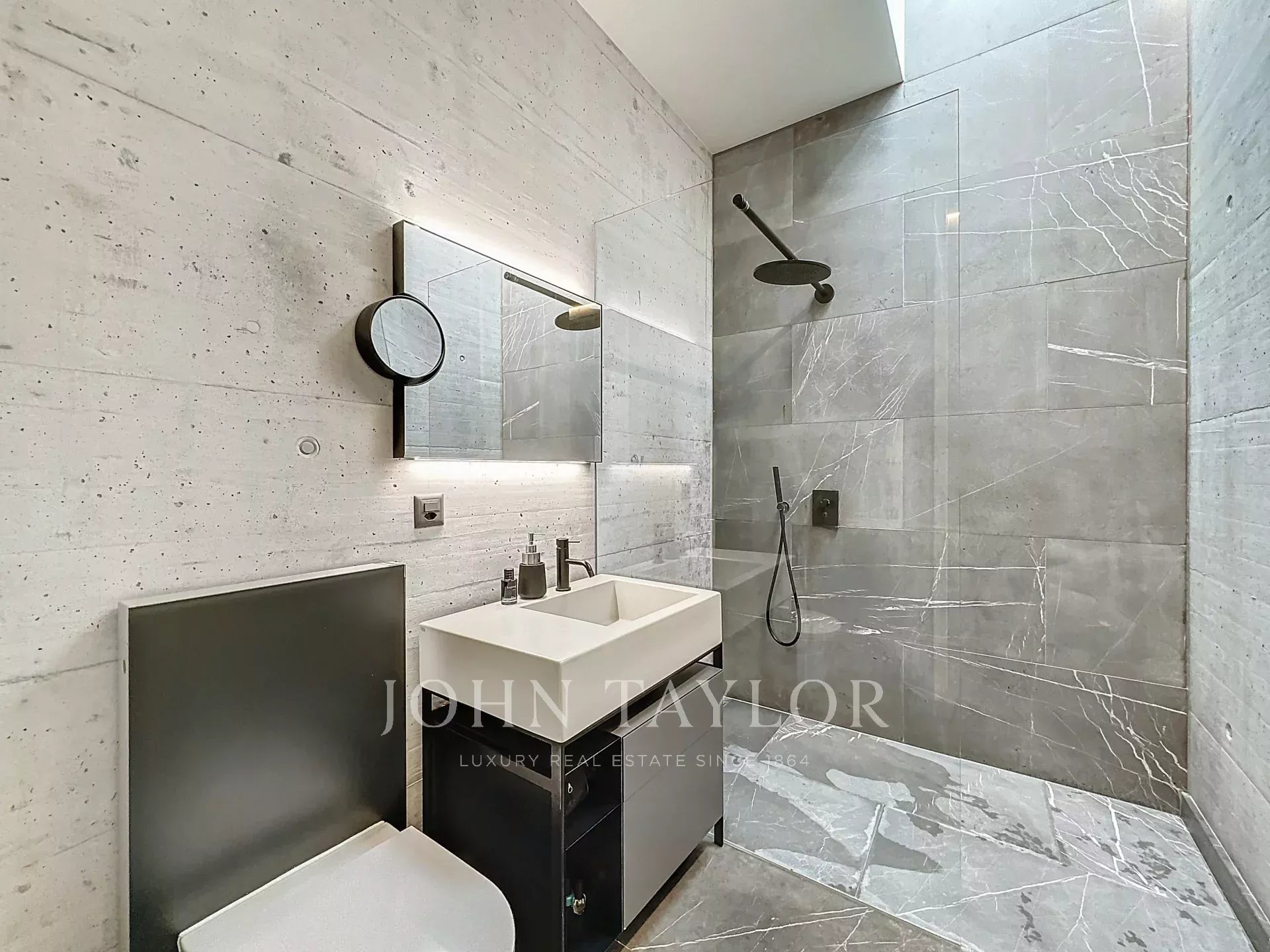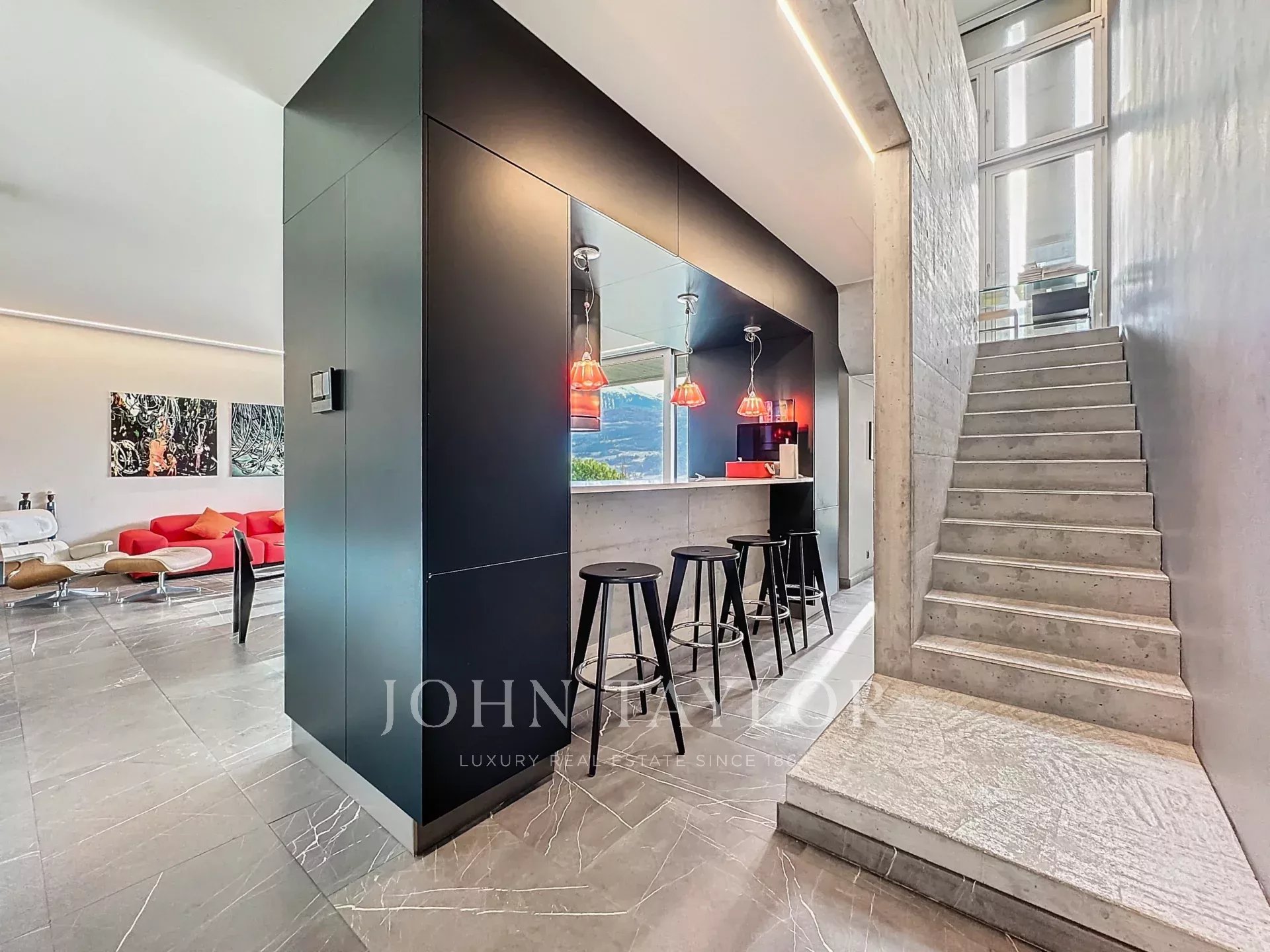 Situada en el codiciado barrio de Gravelone, esta casa construida en hormigón cuenta con una cuidada arquitectura y acabados de alta gama.