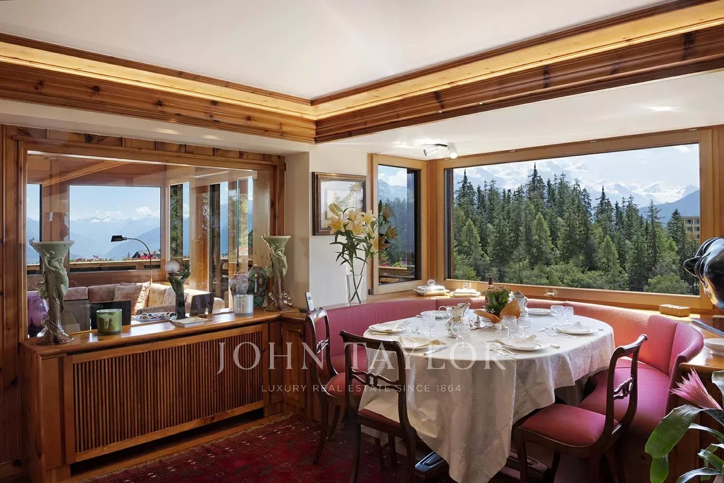 Esta excepcional propiedad de 484 m2 se encuentra en 1.504 m2 de terreno arbolado y goza de una ubicación única y codiciada. Se encuentra a 2 minutos a pie de la salida del teleférico, a 3 minutos a pie del centro de Montana y a 6 minutos a pie del centro de Crans.