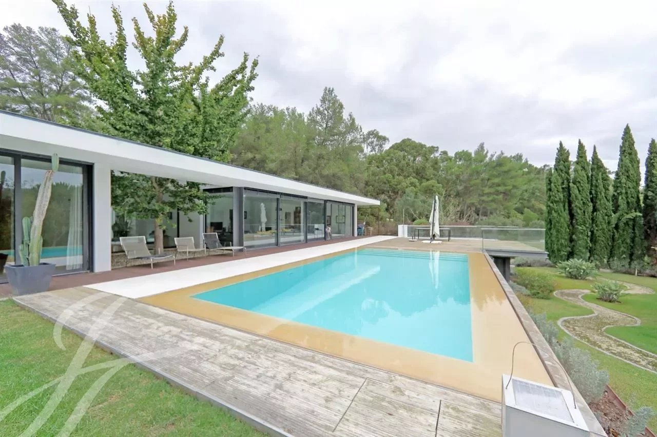 Villa moderna | eco-sostenible | 3 suites | 1 dormitorio | oficina | superficie bruta 422m2 | una sola planta | parcela 4950m2 | total privacidad | piscina | garaje