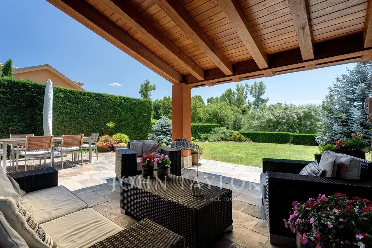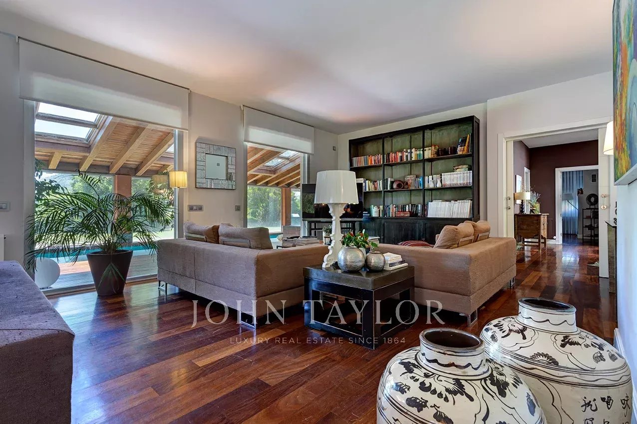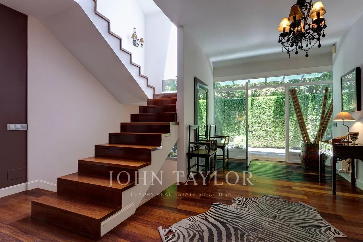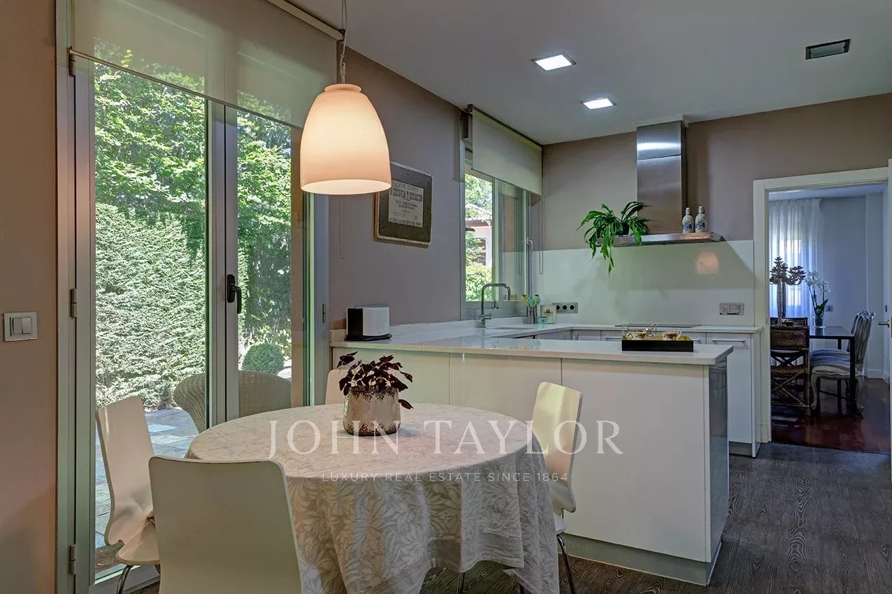 El chalet de 613m² construidos en parcela de 940m², se encuentra en perfecto estado de conservación y conjuga confort con un agradable y moderno interior que le confiere sus materiales y distribución, así como su planta alta abuhardillada.
